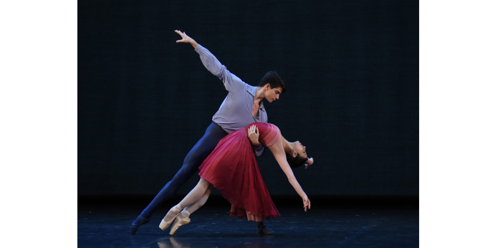 Fast als Fortsetzung von Russos Stück wirkt Terence Kohlers „Transcended“: eine subtil gebaute reife Paarbeziehung, exquisit getanzt von den Gästen Katherina Markowskaja und Maxim Chashchegorov. Der nie abbrechende Bewegungsfluss der beiden Ex-Staatsballett-Solisten ist wie ein einziger Atem in der Musik, (Philip Glass: Vionlinkonzert 2. Satz) – ein einziger Ausdruck von innerer Spannung, Hoffnung und Zweifel.