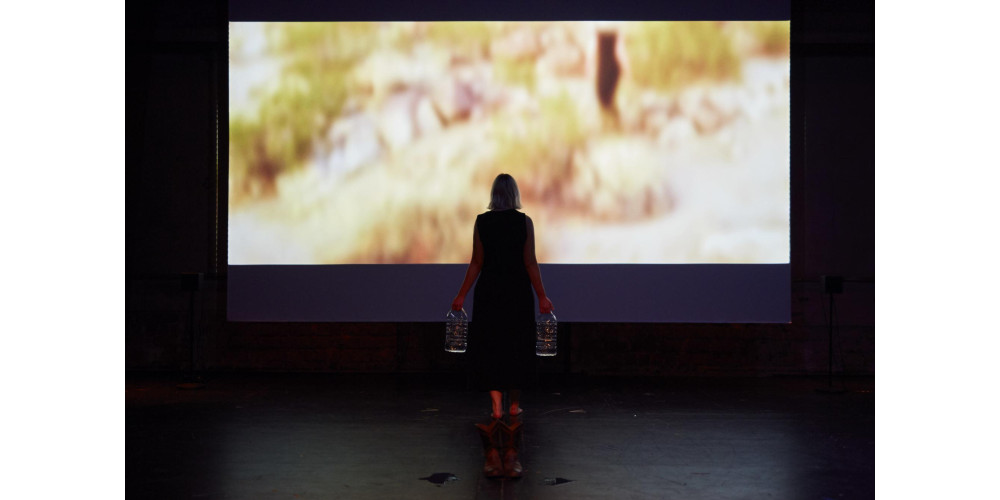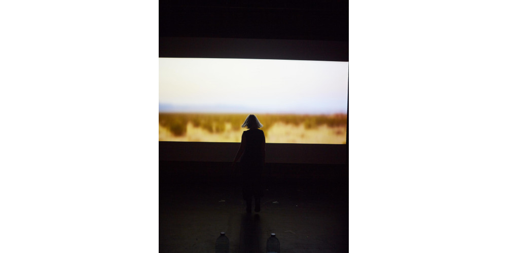 Auf der Bühne befinden sich nur eine riesige Leinwand, zwei große Wasserplastikflaschen und etliche Lautsprecher. Lulu Obermayer ist auf der Leinwand verschwommen zu erkennen. Sie läuft durch eine Wüste, läuft und läuft. Sie trägt ein schwarzes Kleid, einen blonden Bob und waschechte Cowboystiefel. Die echte Obermayer sitzt in der ersten Reihe des Publikums und sieht ihrem projizierten Ich beim Laufen zu. Irgendwann steht sie auf, geht in die Mitte der Bühne zu den beiden Wasserflaschen, zieht ihre Stiefel aus und beginnt, mit dem Lebenselixier in Händen, im Uhrzeigersinn die Bühne zu bekreisen. Dabei singt sie klagend auf Italienisch „Solo Perduta Abbandonata“ – „Allein verloren, verlassen“. Das ist alles, was sie tut. Immer wieder, immer wieder, immer weiter.