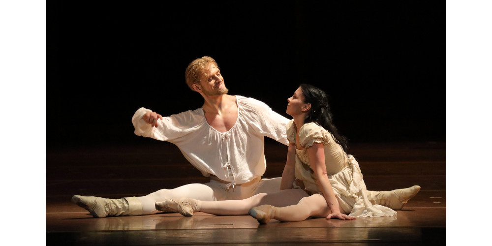 Am Mittwoch folgte „Onegin“ mit einem erneuten Gastspiel von Vladimir Shklyarov in der Titelrolle. Im ersten Bild tanzte Laurretta Summerscales vor ihren anmutigen Freundinnen von der Musik schön getragen. Jonah Cook fand als Lenski sofort gut in die Szene, zeigte durch die tänzerischen Anforderungen hindurch Lenskis Gefühle für Olga. Im Pas de deux beider entfaltete sich der Zauber der Einheit von technischer Makellosigkeit und Emotion, wie es besser wohl kaum geht. Ivy Amista spielte als Tatjana ein sehr junges, introvertiertes Mädchen, das staunt, was bei der Begegnung mit Onegin mit ihr passiert. Vladimir Shklyarovs schöne Linie, seine hohen, schnell gedrehten Sprünge und seine merkwürdige Geistesabwesenheit machten glaubhaft, wie sehr er sie beeindruckte. Als spielfreudige Dorfjugend trug das Corps mit einem kraftvollen Charaktertanz der Jungen und einem anmutig-munteren Reigen der Mädchen zu einem erfreulichen Auftakt bei. In Tatjanas Traum verzehrte sich Shklyarovs Onegin nicht in der gleichen Sehnsucht nach ihr, mit der sie ihn ersehnt, sondern blieb ein spröder Charakter. Doch er bemühte sich energisch um sie und ließ Ivy Amista den Traum Tatjanas gut entfalten. Dabei tanzte er vorzüglich und gewann auch als Darsteller intensive Präsenz.
