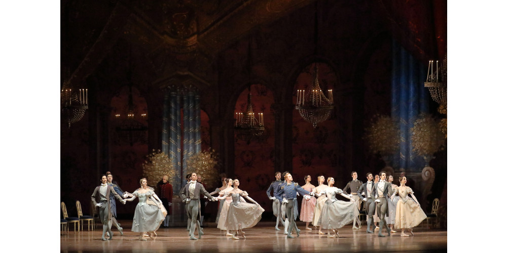 Der Auftakt zum zweiten Akt blieb auch mit vielen neuen Tänzern ein amüsanter Reigen unterschiedlicher Charaktere. In der Mitte ihrer Geburtstagsgäste allein, verdeutlichte Ryshkova zart Tatjanas Sehnsucht nach Liebe, und Murzagaliyev spielte ebenso elegant Onegins gesellschaftliche Gewandtheit wie dessen schnöselige Teilnahmslosigkeit, mit der er ihren Liebesbrief zurückwies. Während außer Onegin alle auf Jürgen Roses prächtiger Bühne, beleuchtet von Christian Kass, in herrlichen Farben erstrahlten und wie beflügelt von der Freude des Festes tanzten, machte Ryshkova in der Geschwindigkeit ihres Solos mit Tatjanas heller Verzweiflung betroffen. Umso neckischer tanzten Onegin und Olga miteinander, bis Lenski die Fassung verlor. Alle trugen zum Gelingen des Aufbaus dieser Szene bei, die dramatisch gipfelte in Lenskis Forderung an Onegin. – Im Bild des kalten russischen Winters brachte Jonah Cook den Schmerz Lenskis über dessen bevorstehenden Abschied vom geliebten Leben so durchgängig zum Ausdruck, dass sein virtuoser Tanz zum faszinierenden Legato geriet. In seinem verzweifelten Zwiespalt zwischen Einlenken und Behauptung seiner Ehre ließ er sich weder von Olga und Tatjana vom Duell abbringen - so lebhaft sie ihn auch beschworen - noch von Onegin, der sein Angebot zur Versöhnung ruhig vortrug und nach der Tötung des Freundes für seine Begegnung mit den Frauen zwar noch nicht das perfekte Timing fand, aber am Ende doch, entsetzt über sich selbst, so einknickte, dass es überzeugte.