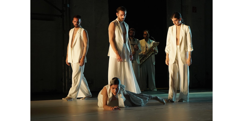 Ganz in Weiß und auf Strümpfen vor dunkler Kulisse tanzen die vier Tänzer*innen, oftmals akrobatisch, auf einer großen rechteckigen weißen Fläche Gefühle, sogar so etwas wie Walzerklänge sind zu hören, die das grelle, weiße Licht etwas milder erscheinen lassen. Bei der Darstellung von Gewaltszenen, teils in Zeitlupe, was eine besondere Körperbeherrschung abverlangt, verhärten sich nicht nur die Klänge, werden schrill und dissonant, bis hin zu Vierteltonreibungen, bevor sie in ruhige, harmonische Melodien im positiven Sinne dahinplätschern, wenn sich die Emotionen beruhigen. Präsentiert wird ein Spiel der Gegensätze, charakterisiert von Spannung und Entspannung, was sich durch die gesamte Vorstellung hindurchzieht. Dabei geht es nicht nur um den Kontrast Mensch und Künstliche Intelligenz. Thematisiert wird in dieser bemerkenswerten Kreation auch das menschliche Bewusstsein mit seinem Körperbewusstsein, das die Künstler*innen dem Publikum eindringlich vor Augen führen. Dass die künstliche Intelligenz nur Inspirationsquelle sein kann, wird an diesem Abend im perfekten Zusammenspiel aller Künste deutlich. Mit anhaltendem - echtem - Applaus werden die Akteure belohnt.