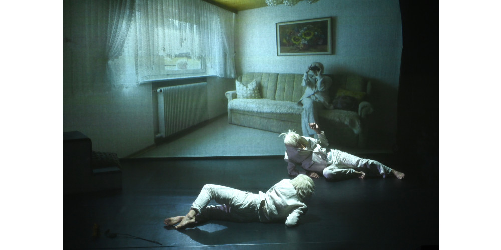Das große Los im Vorfeld haben die Tänzerin Angela Mössner und ihr Kollege Nikos Konstantakis gezogen. Ihre Auftritte wurden vorab filmisch festgehalten. Und so turnen, chillen und wüten die beiden im Bühnenhintergrund des schwere reiter, ohne einen einzigen Tropfen Schweiß zu verlieren. Und noch etwas hat dieses kuriose – einerseits aus der Zeit gefallene, andererseits in ihren Räumlichkeiten gefangene – Paar Eléonore Bovet und Ludger Lamers, den zwei Live-Performern vor Ort, voraus: Sie können mir nichts dir nichts den hellen Anzug gegen ein rotes Kleid tauschen sowie mit sich selbst und dem Bild über der Couch verschmelzen. Auf das Motiv in diesem Gemälde kann man sich ebenso wenig verlassen. Es wechselt immer wieder seine Anmutung wie alles andere an diesem Abend. Das anfangs biedere Blumenstillleben verwandelt sich in ein Interieur, irgendwann kreisen dort Zeiger gegen den Uhrzeigersinn. Salvador Dalí hätte vermutlich seine Freude an Felbers surreal-düsterer Phantasie.