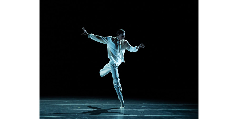 Von völlig anderer Stimmung zeugt das zweite Stück des Abends „L’Éternité Immobile“ – Die unbewegliche Ewigkeit – des vom Ballett der Pariser Oper kommenden Choreografen Nicolas Paul. Dieser hat für acht Tänzer*innen des Bayerischen Staatsballetts eine Eigenkreation geschaffen, bei der sich tiefe Melancholie nicht nur musikalisch breitmacht: Der zunächst dunkle Raum wird von einem einzelnen, in der Größe her beweglichen weißen Lichtstreifen definiert. Sieben der Tänzer*innen bewegen sich wie in Zeitlupe rückwärts, während eine einzelne Tänzerin (Elvina Ibraimova) in ihrem Solo gefangen wirkt – gleich eines eigenen Mikrokosmos. Ein Spiel mit der Vergangenheit und Gegenwart entspinnt sich, was Hauptthema dieses vermeintlich abstrakten Stücks zu sein scheint.