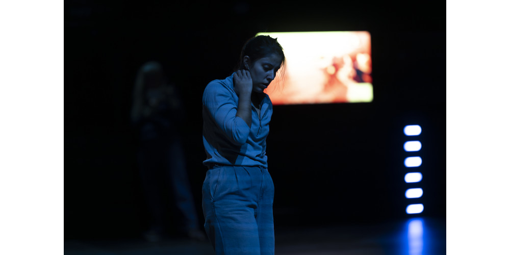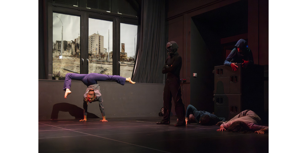 Wieder zurück im dunklen Festsaal gewinnt die Aufführung dann mit jeder Minute an Dichte und Intensität. Konnte man dem eingangs erwähnten Ratschlag von Beate Höhn bis dahin folgen und immer in Richtung der Lichtquelle schauen, so wird dies zusehends unmöglich. Da zucken einige der ausgezeichneten Tänzer*innen konvulsivisch, während andere ein paar Meter weiter wie Zombies wanken. Da kreiselt der Hip-Hop-Weltmeister Henry Nguyen auf seinem Kopf, während kurze Zeit später der Akrobat Jonas Dürrbeck eine Fahnenstange für seine Kunst zweckentfremdet. Dazu ein rasant geschnittener, auf eine große Leinwand projizierter Film von Ali Al-Zubaidi, der einen mit einem halben Jahrhundert Weltgeschichte konfrontiert: Von Aids bis Ebola, von Anti-Atom-Protesten bis zu den Massendemonstrationen nach dem gewaltsamen Tod von Jina Mahsa Amini. Dazwischen immer wieder Kriege, zerstörte Häuser, Tote und sehr viele Populisten und Potentaten. Dazu dröhnt die Soundanlage, einige Zuschauer*innen halten sich die Ohren zu.