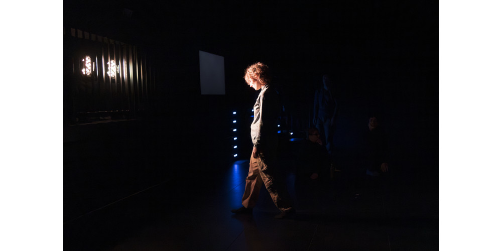Schlagartig ist die Stimmung gekippt, es wird bedrohlich. Hörte man gerade noch Melodisches, wummert jetzt der Bass des Live-DJs Marius Müller, und zu diesem Zeitpunkt weiß das Publikum: Die Soundanlage des Festsaals kann was! Das werden Beate Höhn und Micha Purucker im Verlauf ihrer gut 70-minütigen Performance auch noch zu nutzen wissen. Man ist froh, wenn der harte Sound fürs Erste wieder abschwillt, sich die Tür zum holzgetäfelten Kleinen Saal öffnet und man weitergehen kann. „confused + affected“ ist wie ein Parcours konzipiert, gemeinsam schreitet man von Station zu Station. Die Aufführung beruht auf der Ausstellung „welcome to oblivion“, die Höhn/Purucker im vergangenen Jahr für Nürnberg, Fürth und München entwickelt hatten. Vor dem Hintergrund der sogenannten Zeitenwende präsentierten sie da Texte und Fotos, Filme und Wortbeiträge, die um die Frage kreisten, wie es sein kann, dass so vieles, was wir mit dem Fall der Mauer 1989 eigentlich für überwunden hielten, derzeit mit voller Wucht wiederkehrt: Die Sehnsucht nach Autokraten, die sagen, wo es lang geht; neoimperialistische Kriege; erneuter Kampf um die Rechte von uns Bürgern. Kurz: Kein Ende der Geschichte, nirgends.