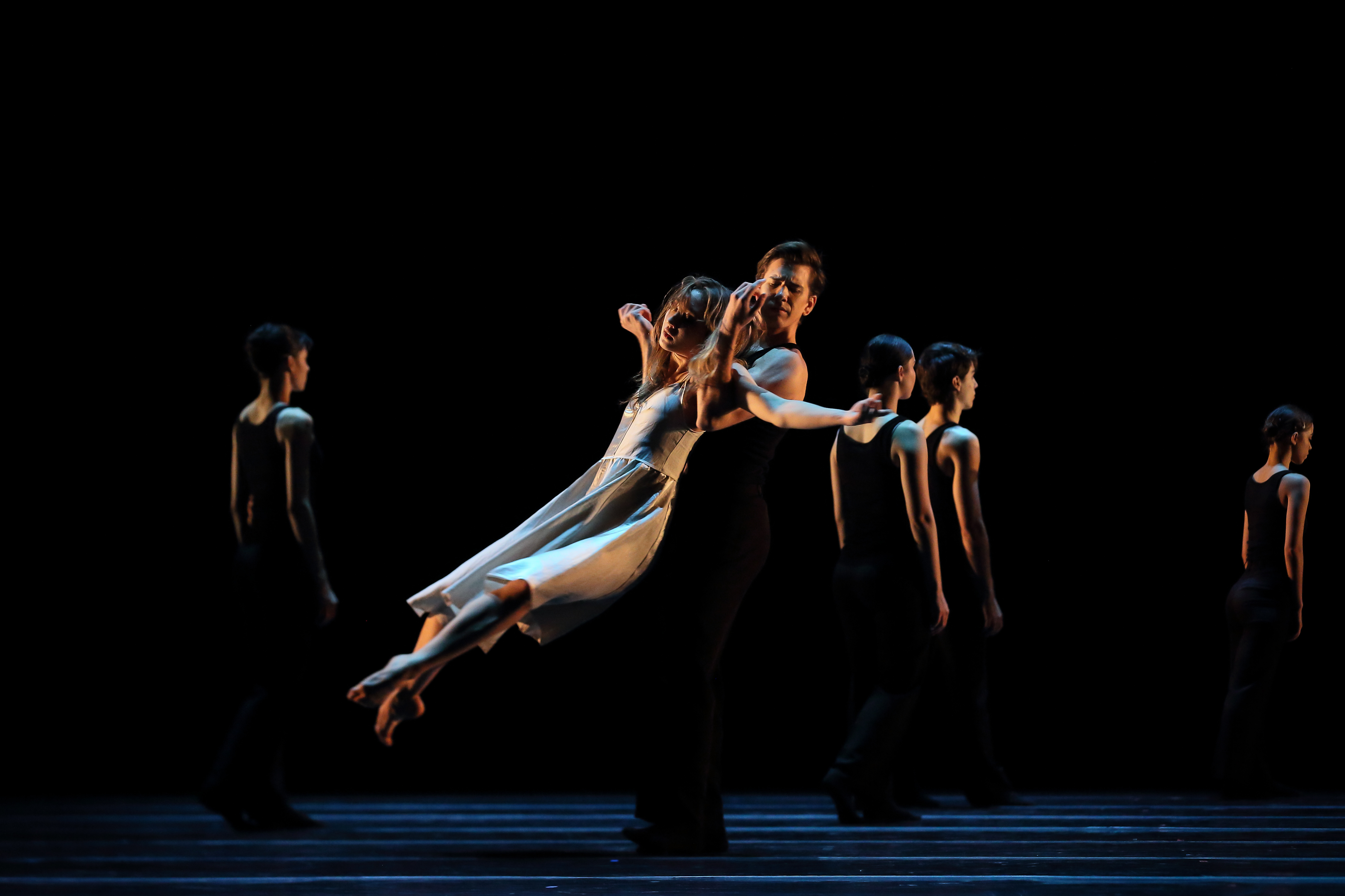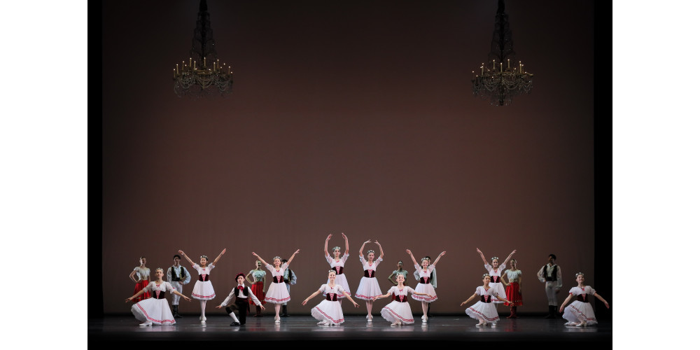 Während Elisabeth Tonev und ihr Tanzpartner Constantine Allen die Schwerkraft zu besiegen scheinen, so schweben auch schon die Jüngsten in neuen Höhen, wenn sie vor ausverkauftem Haus mit dem „Grand pas d’Hongrois“ aus „Raymonda“ das Publikum begeisterten und zum Teil zum ersten Mal im Programmheft namentlich erwähnt sind – ein besonderer Moment im Leben angehender Tänzer*innen. Mit einem Feuerwerk der Superlative im Bereich des klassischen Tanzes, dem „Grand pas d’hongrois“ aus „Raymonda“ sorgen die Student*innen für Furore und führen vor Augen, was es bedeutet, Präzision, Ausdruck, schnelle Beine, Gruppenformationen und -tänze, Pas de Deux, Hebungen und Raumästhetik unter einen Hut zu bringen, mit Leidenschaft und Ausdruckskraft, unabhängig vom Ausbildungsniveau.