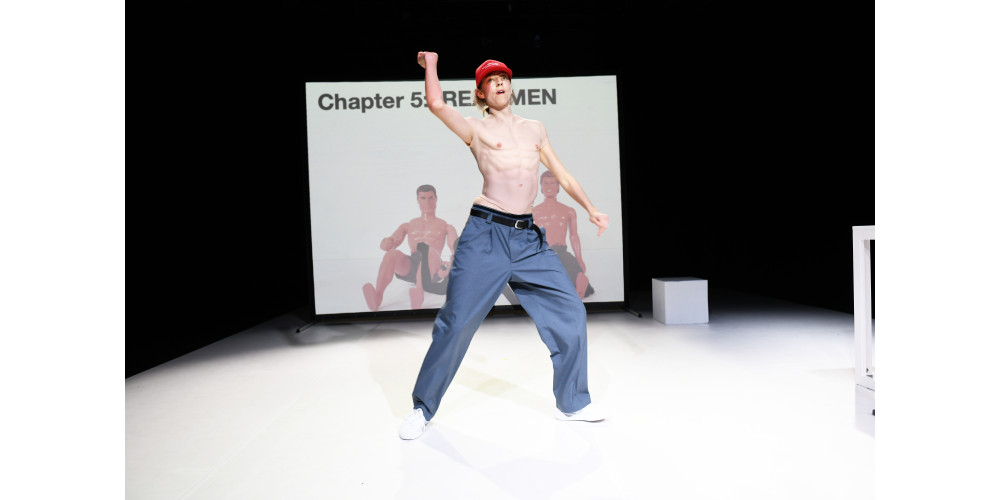 Immer wieder wird auch die Aufnahme der Livekamera zu einem szenischen Setting, zum Beispiel wenn Orton in Chapter 2, „Big Boys”, die zwei Ken-Puppen links und rechts neben sich an die rückwärtige Leinwand projiziert und sie zu dritt einen stimmlich ins Kindliche gepitchten Dialog darüber führen, ob „Boys” wohl mit Puppen spielen. Ergebnis: „No, we could play with them, but we don’t want to!“ Ebenso spielerisch gelingt Orton die Verwendung eines muskulös männlichen* Silikon-Bodysuits, der nach einem erst grotesken, dann nach allen Regeln der Drag-Kunst gelungenen Strip präsentiert wird.