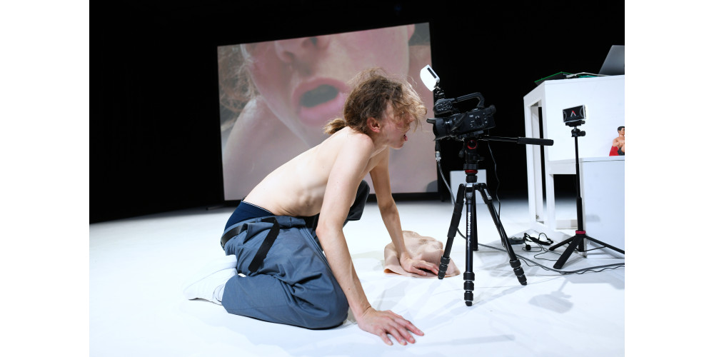 Orton arbeitet dabei durchweg mit technisch einfachen und offen gelegten Mitteln, bestehend aus Videoeinspielungen, einer Live-Kamera, einer Soundstation sowie O-Tönen, die unterschiedliche Positionen zum Thema wiedergeben: Zu hören sind z.B. Statements der Gender-Forscherin Paula-Irene Villa Braslavsky, aber auch chauvinistische Aussagen von Andrew Tate und Björn Höcke.