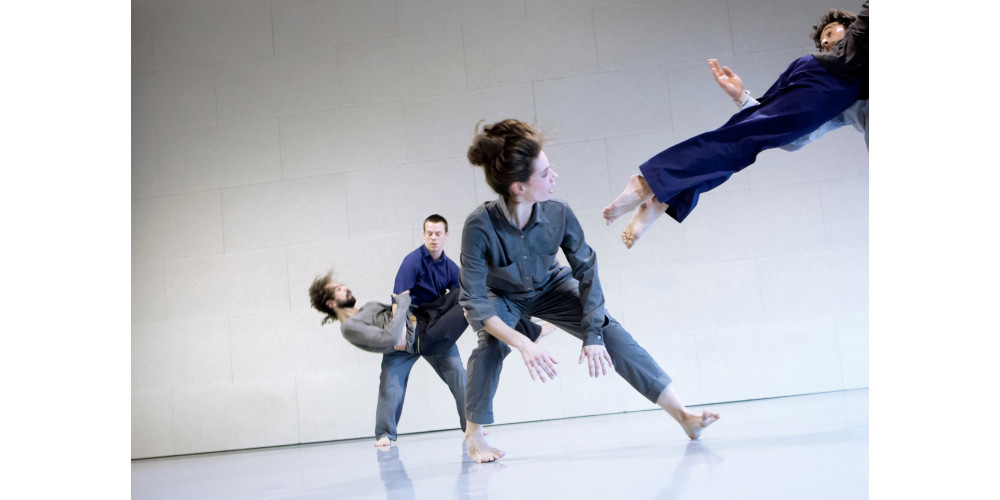 Den gibt es bei Nader und Campos dafür geballt, auch wenn der Tanz von mechanischen und physikalischen Prinzipien inspiriert scheint. Es geht sehr langsam los. Mit dem Pendeln eines Armes und schnelleren, schneidenden Bewegungen, unter denen sich die anderen Tänzer*innen in alle Richtungen wegducken und -biegen. Pendel- und Kippbewegungen auch des ganzen Körpers bleiben ein Grundmotiv, mal wird Kraft durch eine gleich große Gegenkraft neutralisiert und die Bewegung steht still. Dann wieder herrscht eine Dynamik, die man etwa vom Aikido kennt: Die Energie des Angreifers – hier: Tanzpartners – wird aufgenommen und umgeleitet. So rollen die fünf einander paarweise über den Boden, haken sich Hüfte an Hüfte ein, verschmelzen zum Perpetuum Mobile und immer neuen mobilen Gruppenbildern. Aber auch Breakdance, Handstandakrobatik und die Haltekraft der Mittanzenden testende gewagte Sprünge kommen zum Zug. Zeitgenössischer Tanz goes Cirque Nouveau, und das alles in zarten Weiß-Grau-Silber-Tönen. Die beherrschen auch die Live-Videos, die GN| MC erstmals für ihre Arbeit nutzen. Heun hat die Truppe mit den Videokünstlern Lluís Bullón und Pol Mas de Xaxàs zusammengebracht, und gleich das Eingangsbild ist wunderschön: Die Schatten der von hinten angestrahlten Tänzer*innen legen sich lang auf den Screen, während der erste, der aus der Gruppe heraustritt, von oben gefilmt wird und sehr klein, aber gestochen scharf über die Schatten geht wie die Zukunft über die Vergangenheit. Es wäre nicht das erste Mal, dass ein solch einmaliger Versuch neue künstlerische Allianzen stiftet.