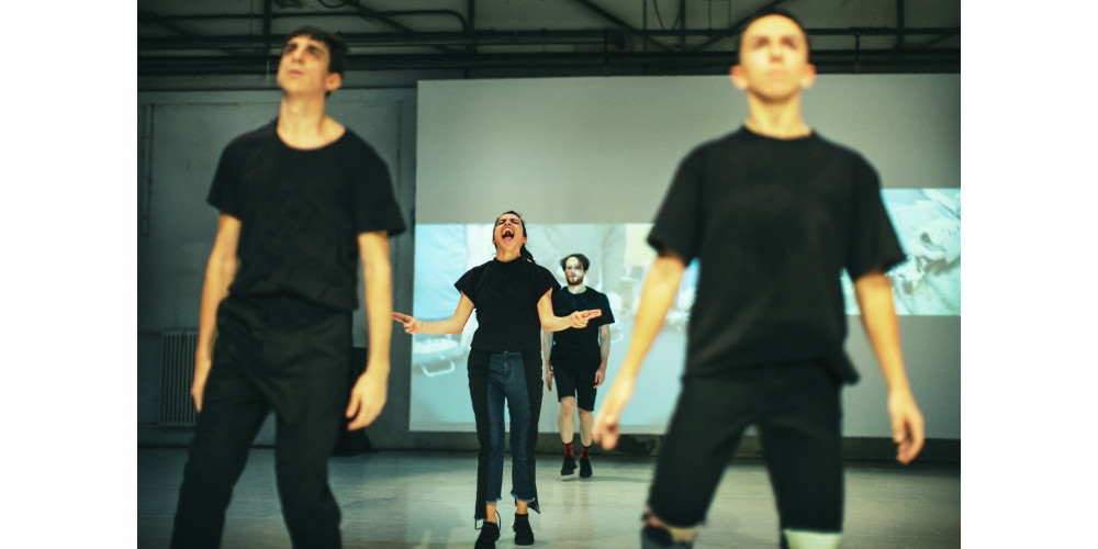 Nur ein paar Handverlesene aus der zeitgenössischen Tanz-Szene der Stadt sind in der dennoch okay gefüllten Halle auszumachen. Menschen U30 sind auch dabei, und es geht auch gleich mit viel Street Credibility los. Moritz Ostruschnjak bestellt mit seinen Tänzer*innen Guido Badalamenti, Daniel Conant, David Cahier und Magdalena Agata Wójcik die politische Startrampe des ansonsten eher auf Sinneseindrücke fokussierten Multimedia-Parcours. Die vier laufen mit Bewegungen auf, die der Münchner Choreografie-Shooting-Star für sein Pandemie-Meisterstück „Yester:Now“ kreiert hat. Viel dynamisches Gehen und lässiges Marschieren ohne Raumgewinn, plus zeichenhafte Arm- und Handbewegungen, denen diesmal die Verlängerung durch Plakate, Fahnen und Schlagstöcke fehlt. Einige wilde Step-and-Turns scheinen von dem Solo „Tanzanweisungen“ inspiriert. Auch mit Roboterwesen, wie sie ein paar Umdrehungen perfekter in Moritz Stumms Videos auftauchen, hat Ostruschnjak schon gearbeitet. Und die rhythmisch geschnittene Collage aus Selfies amerikanischer Waffennarren kennt man zwar aus „Autoplay“, sie entfaltet aber so kurz vor der Schicksalswahl in den USA einen gesteigerten Horror. Copy and Paste, Mix and Match, seit Jahren Ostruschnjaks Kompositionsprinzipien, wendet er in dem Video-Tanz-Shortie „HURRA“ konsequent auf das eigene Oeuvre an. Für Fans des Münchner Choreografen bietet der damit zwar wenig Neues, aber er zeigt dem Hurra-Patriotismus dieser Tage einen sehr coolen Stinkefinger.