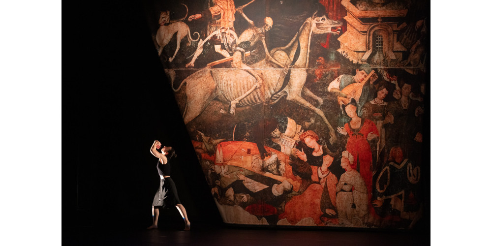 Auch der Tod ist ein Thema, das jeden von uns angeht. Doch wird er heute meistens verdrängt. Anders im Mittelalter und in der Renaissance. Hier konfrontierte man sich künstlerisch mit dem „Triumph des Todes“. So heißt auch ein sizilianisches Wandgemälde von einem unbekannten Künstler aus dem 15. Jahrhundert, das man im Palazzo Abatellis bewundern kann. Oder in der Inszenierung „invisibili“ von Aurélien Bory, wo es als riesige Stoffbahn über die ganze Bühne gespannt ist. Der Franzose lässt einzelne Szenen des Freskos, auf dem ein klapperdürrer Tod auf einem klapperdürren Pferd durch eine Menschenmenge pflügt, wie unter dem Brennglas von einem Tänzer und vier Tänzerinnen nachstellen. Hier betet eine junge Frau, dort fleht ein alter Mann oder lenkt sich ein Musiker mit seinem Instrument ab. Der Sensenmann, so der Tenor des Bildes wie des Reenactments, erwischt jeden, ob jung, ob alt, ob arm, ob reich.