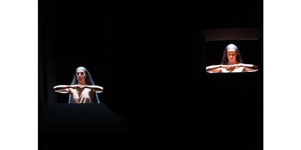 Nicole Mossoux und Patrick Bonté versetzten sich in die Köpfe der von Lucas Cranach dargestellten Personen und fragten, wie sich diese bei ihrem Handeln gefühlt haben könnten. Beispielsweise Adam und Eva kurz vor dem Sündenfall. Oder Judith im Moment, bevor sie den Kopf des Holofernes vom Rumpf trennen wird. Dazu haben die Belgier*innen eine große Wand mit unterschiedlichen Öffnungen im Stil illusionistischer Trompe-l’œil-Malerei auf die Bühne gewuchtet. Die fünf Performer*innen, nackt oder in prächtige Renaissance-Kostüme gekleidet, springen dem Publikum so beinahe entgegen. Ein Effekt, der durch die ausgetüftelte Lichtregie noch verstärkt wird.