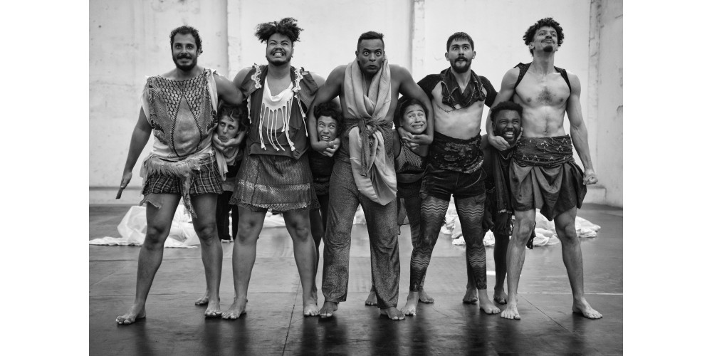 Das Anliegen in „Borda“ ist viel weniger diffus als die anfängliche Beleuchtung. Nach dem ungewohnt monochromen und ruhigen ersten Teil, der auch einiges an Geduld erfordert, folgt ein zweiter, in dem sich die Performer*innen ihrer Masken und Lumpen entledigen und sich in die bunte brasilianische Tanz-Kampf-Show-Truppe verwandeln, die man kennt. An der Nahtstelle dazwischen haben sie ihre Kopf- und Körper-Polster wie abgelegte Fesseln triumphierend in die Höhe gehalten und miteinander zu flüstern und zu kichern begonnen: Nicht eins zu eins entschlüsselbare kleine Akte des Wiederstandes, mit denen sich diese neue Gemeinschaft gleichsam zur Welt bringt.