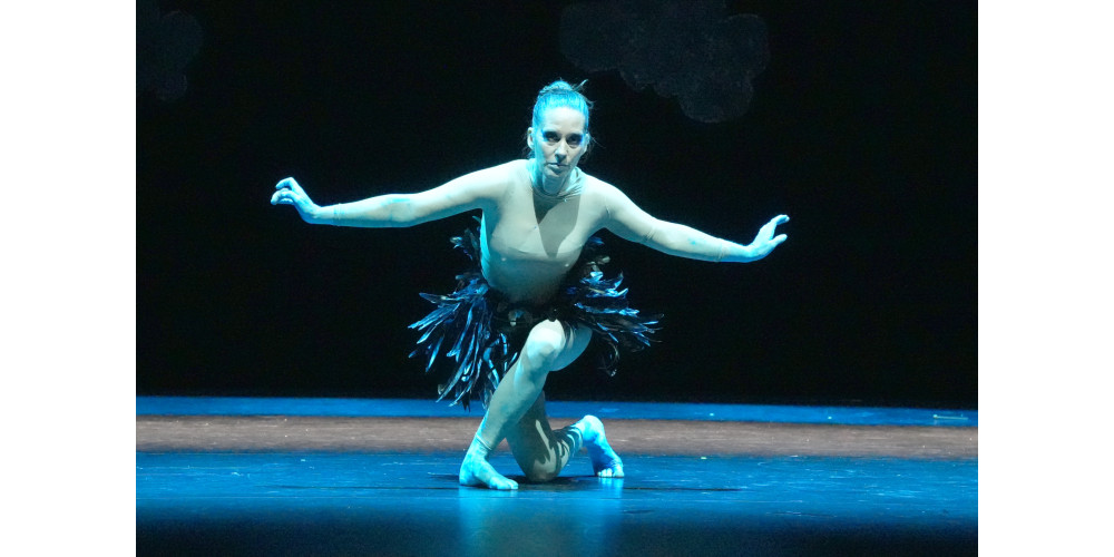 „Mein Vater, mein Vater, jetzt fasst er mich an“, rezitierte eine Offstimme Goethes „Erlkönig“ zu Beginn von „Insomnia – Die schöne Nacht“. Die Choreografinnen Ida Crusius, Eva Eger und Julia-Marie Gerard habe die Traumwelten einer schlaflosen Nacht in surrealen Figuren und Szenen zwischen Absurdität und latentem Schrecken buchstabiert. Ganz so düster, wie die magische Ballade, gerät die über einstündige Tanzperformance letztlich doch nicht. Es ist eher eine Aneinanderreihung von kurzen Clips und rätselhaft-komischen Szenen mit oft minimalistischem Bewegungsvokabular. In einer Mischung aus Alice im Wunderland, Triadischem Ballett und kafkaesker Unheimlichkeit rollen Schnecken mit Pauken auf dem Rücken durchs Bild. Boote schaukeln über die Bühne und ein grässlicher Frosch tanzt Samba zum Glockenspiel, das zwischen seinen Beinen klemmt.
