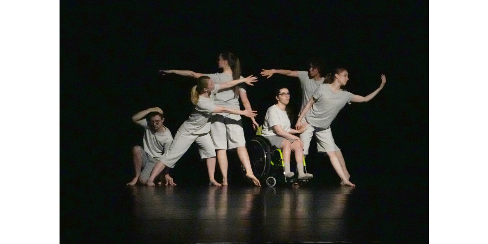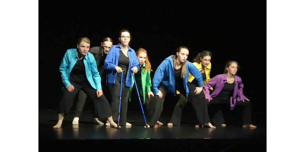 Anfang Juni konnten das Tanztheater Annette Vogel und ein Kollektiv von drei freien Choreografinnen aktuelle Produktionen vorstellen. Vogel, die seit langem als Pädagogin und Choreografin mit Laien mit und ohne Behinderung arbeitet, präsentierte mit der inklusiven Tanzcompany „klapptbestimmt 24“ aus Regensburg zwei längere und zwei kürzere Stücke. Mit Witz und Chuzpe setzen sich diese intensiv mit Fragen nach Inklusion und deren Bedeutung für die Gesellschaft auseinander. Mit dem namengebenden Stück feierte die Truppe, der Profitänzerinnen wie Laien, Rollstuhlfahrende und auch sehr junge Menschen angehören, bereits 2021 Premiere.