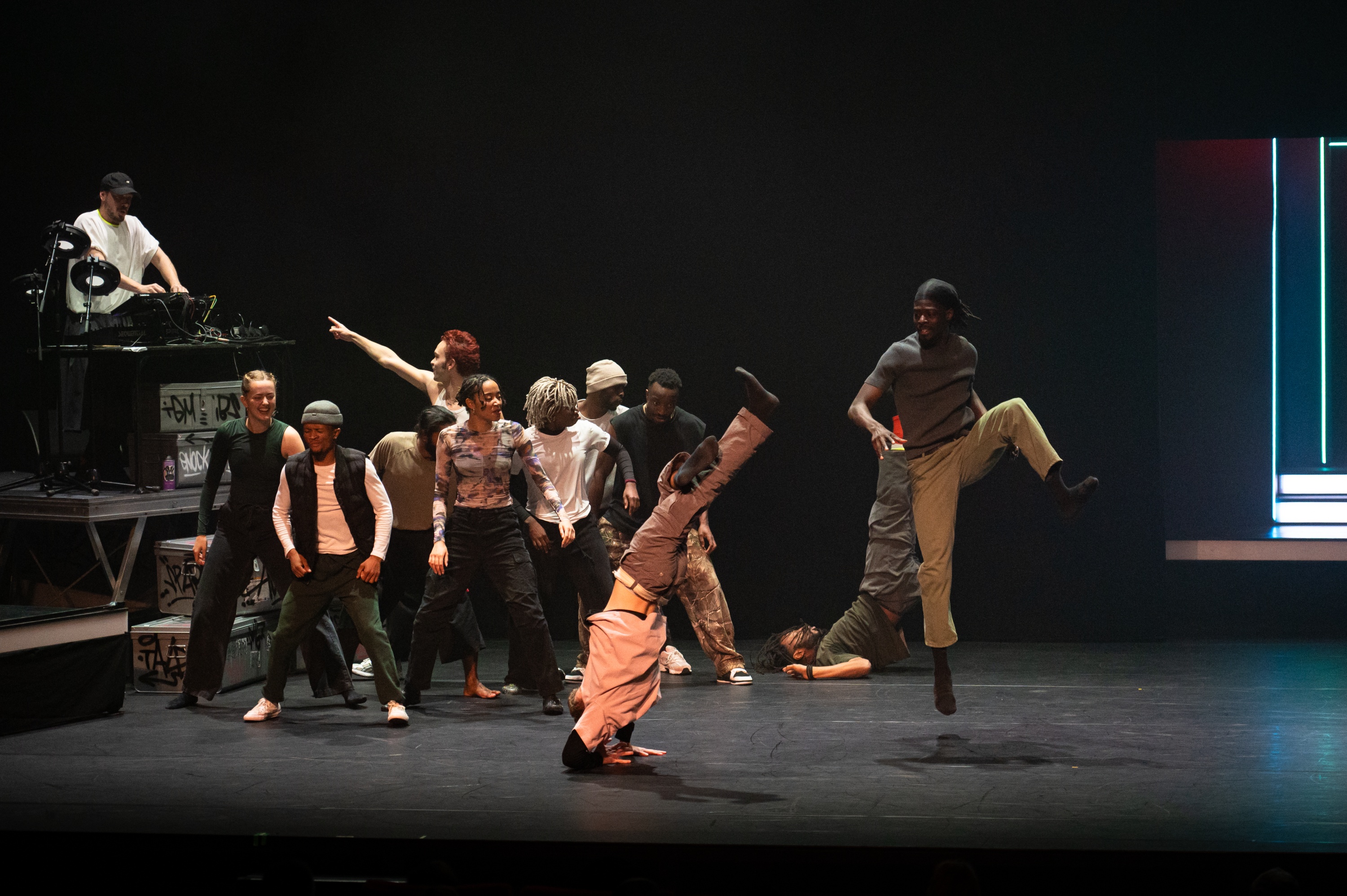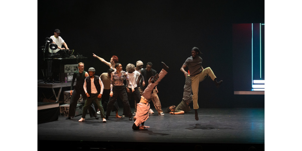 „Heieiei“, „hoho“ und „let´s go!“: Die jungen Frauen hinter mir wohnen offenbar keiner Vorstellung einer zeitgenössischen Tanz-Kompanie bei, sondern einem Dance-Battle, in dem alle ausgefalleneren Moves kommentiert und die Tänzer*innen lautstark angefeuert werden dürfen. Dass das sonstige Publikum in der Muffathalle, wo die Compagnie Amala Dianor gastiert, vollkommen anders geeicht ist, scheint sie nicht zu kümmern. Doch dieser Wirrwarr von Verhaltens-Codes auf der Zuschauer-Tribüne zeigt, wo man hier gelandet ist: in einem Zwischen-Raum auf halbem Weg zwischen Straße und Kulturtempel, urban und zeitgenössisch, cool und Kunst – in dem zehn Tänzer*innen aus vier Kontinenten den Beweis antreten, dass diese vermeintlichen Gegensatzpaare keine sein müssen.