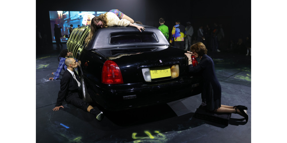 Das Auto ist ein Symbol für Macht und Reichtum. In diesem Zusammenhang stellen die Performer*innen einen skurrilen Contest aus Amerika nach. Dabei sollen Menschen ein Auto küssen. Die Person, die am Längsten durchhält, gewinnt. Dabei nehmen sie die merkwürdigsten Haltungen ein: Ob halb unter dem Auto liegend, rechtwinklig über die Motorhaube beugend oder kopfüber vom Autodach herunterhängend. Alles ist dabei. Und dann halten sie diese manchmal ungemütlich aussehenden Posen minutenlang aus, während sie das Auto küssen. Eine Karikatur der im Jahr 2017 stattfindenden Absurdität, dass man eine Luxuslimousine gewinnen kann, wenn der Kuss nur lang genug währt.
