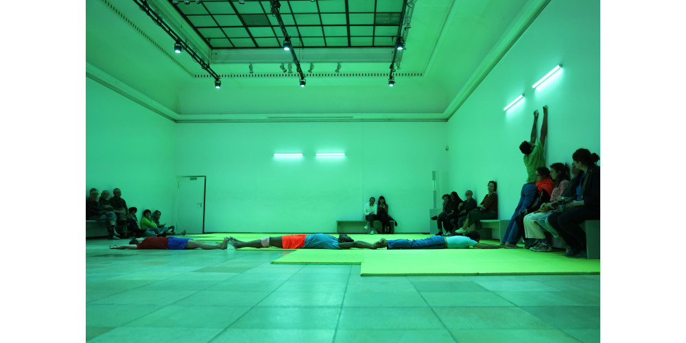 Durch die dichte Nähe zum Publikum und die Wiederholung bestimmter Bewegungen entsteht ein Raum, in dem sich Macht, Kontrolle und soziale Dynamiken körperlich andeuten – ohne sie klar zu benennen. Die Performance fordert heraus, eigene Grenzen zu spüren und zugleich die Möglichkeit einer kollektiven, widerständigen Gemeinschaft zu erleben.