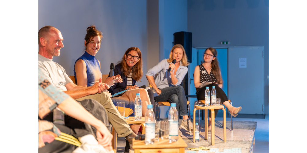 Den Anfang machten Choreografin Emi Myoshi und Tänzerin Anna Kempin des Freiburger Shibui Kollektivs. Beide skizzierten Erfahrungen wie Kündigung am Stadttheater oder Perspektivlosigkeit wegen ihrer Schwangerschaft. Die im Tanz körperlichen Herausforderungen und Leistungsansprüche, die Mütter neben all den strukturellen Hürden meistern müssen, wurden hier wie in allen weiteren Gesprächsrunden besonders deutlich. Im von Myoshi gegründeten Shubui Kollektiv, das im Übrigen Freiburgs erste institutionell geförderte freie Tanzkompanie ist, fanden beide eine Heimat, die ihre künstlerischen und privaten Bedürfnisse miteinander vereinte. Zum Beispiel berichtete Anna Kempin davon, dass Kursteilnehmer*innen bei ihren Vermittlungsangeboten in der Care-Arbeit mithelfen.
