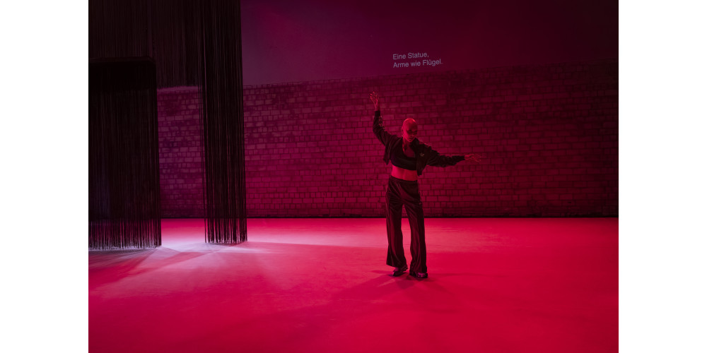 Anders als in vielen tänzerischen Interpretationen dient Ravels „Bolero“ nicht der musikalisch-rhythmischen Untermalung des Tanzes. Vielmehr übertragen Rykena/Jüngst dessen musikalische Prinzipien des langsam-stetigen Anschwellens bis zur ekstatischen Entladung auf eine inhaltliche Beschäftigung mit dem Prinzip des Höhepunkts. Beziehungsweise geht es bisweilen v.a. um den Moment vor einer Klimax, bevor sich die aufgeladene Spannung entlädt. Vielschichtige Assoziationen werden performativ und sprachlich durch den Raum geworfen. Referenzen aus der Popkultur wie der existenziellen Wahl zwischen der roten und blauen Pille in Matrix überlagern sich mit märchenhaften Erzählungen, Mythen. Sexuelle Ekstase bricht durch die Beschreibung des letzten körperlichen Aufbäumens vor dem Tod. Die hochkomische Hetzjagd, in der sich die Performenden und die Audiodeskriptionsstimme gegenseitig anstacheln und wie in einer Zeitschleife Bewegungen und „Anweisungen“ immer wieder von vorn beginnen, entlädt sich in plötzlicher Stille, Bedrohlichkeit.