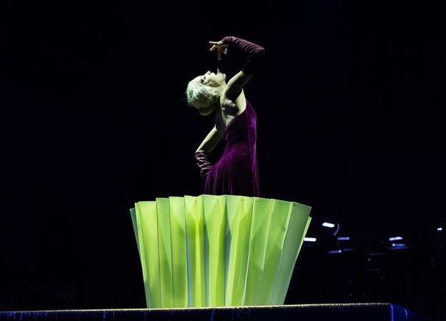 Abgearbeitet hat sich Schreiner auf jeden Fall. Vor allem an Strauss, der ja für das süße Sujet keine schlichten taktgebenden hüpfigen Ballettmelodien geschrieben hat, wie wir sie von Ludwig Minkus und Riccardo Drigo kennen, sondern eine symphonische Partitur: farbig-klangdicht, zu Beginn heiter, im Krankenzimmer eher düster. Und während das Staatsorchester unter Marco Comin – auf erhöhtem Podest am hinteren Ende der schlauchartigen Reithalle – diese Stimmungen einfängt, meist allerdings zu krachert (Comin forciert wohl wegen der Entfernung zur Zuschauertribüne), sind Kellner, Pagen, Marzipane, Cupcakes und Knallbonbons unentwegt in Aktion. Die Tänzer stemmen und schieben riesige farbige Rechtecke, zu deuten als abstrahierte Kuchenstücke und Cremeschnitten, über die Tanzfläche, lagern in fingerschleckenden Posen darauf und rutschen genießerisch daran herunter. Zwischendrin und drumherum wird auch ständig wuselnd getanzt, immer in Schreiners bekanntem, von Hals über Wirbelsäule bis Fußgelenk wallend-wellendem Stil – den seine Tänzer phänomenal aalgleich beherrschen.