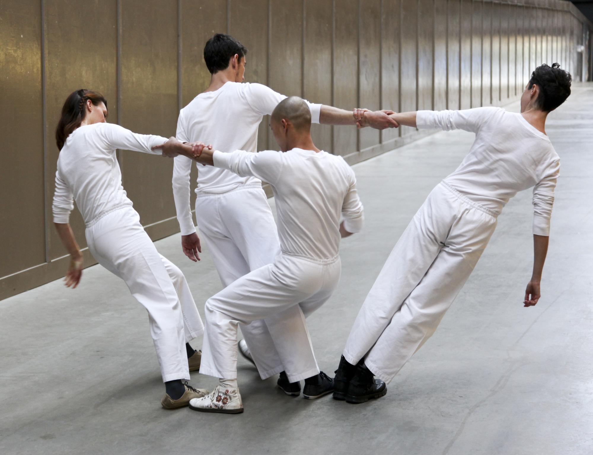 Ein kurzes Lächeln huscht über die Gesichter der Tänzer, und mit einer Kopfwendung haben sie schon eine neue Raumrichtung eingeschlagen, sich eine neue „task“ gewählt. Mit einer Holzlatte auf dem Kopf senken sich ihre Körper langsam ab, die Knie stützen sich auf den Boden, das Bein holt aus und balanciert die Latte. „Done“ tönt es durch den Raum, die Aufgabe wurde erfüllt.