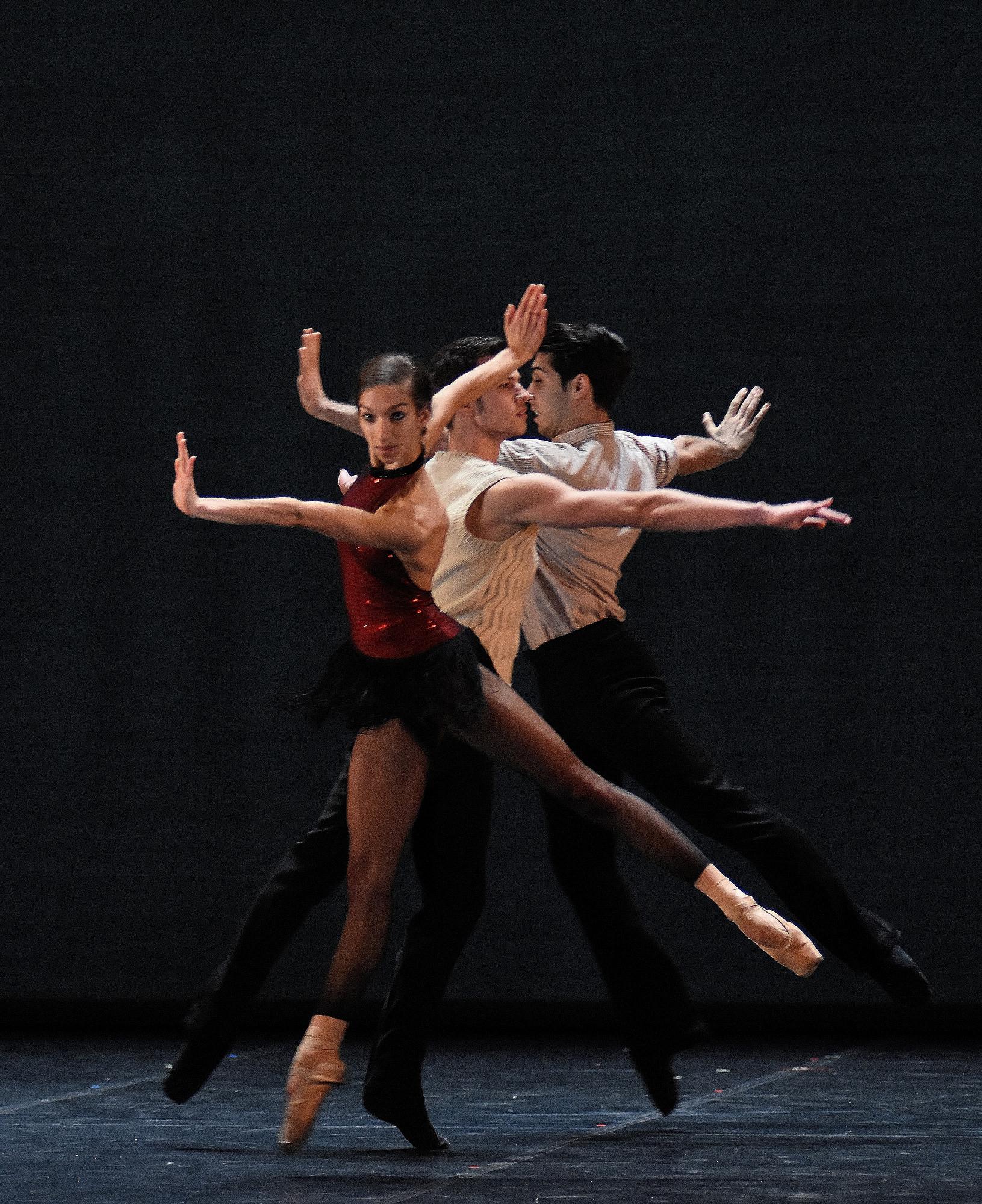 Zum Staatsballett II/Junior Company: sechs Jahre alt ist sie – und super cool: Justin Rimke, feingliedrig, ferderleicht in der Bewegung, fliegt nur so durch Ivan Liškas schrittvertracktes Ligeti-Solo „Ricercare“. Und umwerfend die drei männlichen "Juniors" Federico Bruccoleri, Francesco Leone und Christoph Schaller mit ihrem umworbenen „Star“ Margarida Neto (reif fürs Staatsballett I) in Richard Siegals Kreation zu Gershwins „Preludes“ (II-IV). Siegal, ein besessener Sucher nach überraschenden Bewegungsbrechungen, mixt hier Neoklassik, frech jazzige Elemente und US-Saloon-Dancing zu einem hinreißenden Cocktail. Und die vier „Juniors“ schlenkern diese auf sie zugeschneiderte Choregrafie mit einer Lässigkeit, einem jugendlich frischen Sexappeal – die Neto! – auf die Bühne, dass man am Ende enttäuscht seufzt: „Ach, schon Schluss.“