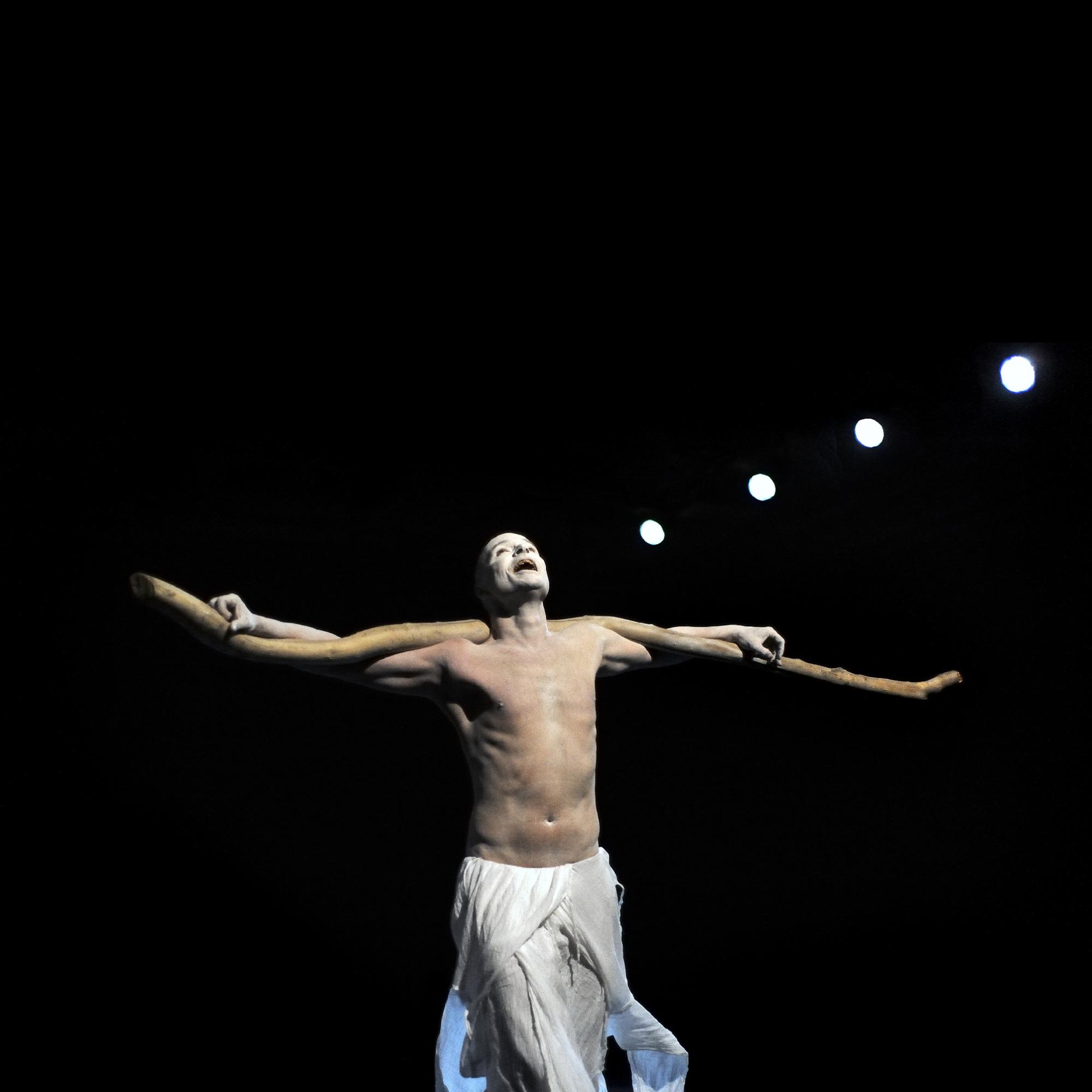 Danach zeigt Marb den letzten Weg-Abschnitt zu sich selbst: Während ein soghafter dichter Klang-Stimm-Strom in den Raum hineinschwillt (Musik: Nick Parkin) und Gertrud Schilde aus ihrer Violine eine harte aufschreiende Musik herausstreicht, wird Marb, nur noch in der traditionellen weißen Butoh-Schminke, ganz zum ‚entblößten Körper’: In Muskelverschiebungen, krampfiger Zuckung und Glieder-Erstarrung, dann auch einen knorrigen Ast über den Schultern tragend, entwirft Marb Bilder von Geburt, Lebenskampf und schließlich das Ankommen in friedvoller Ruhe.