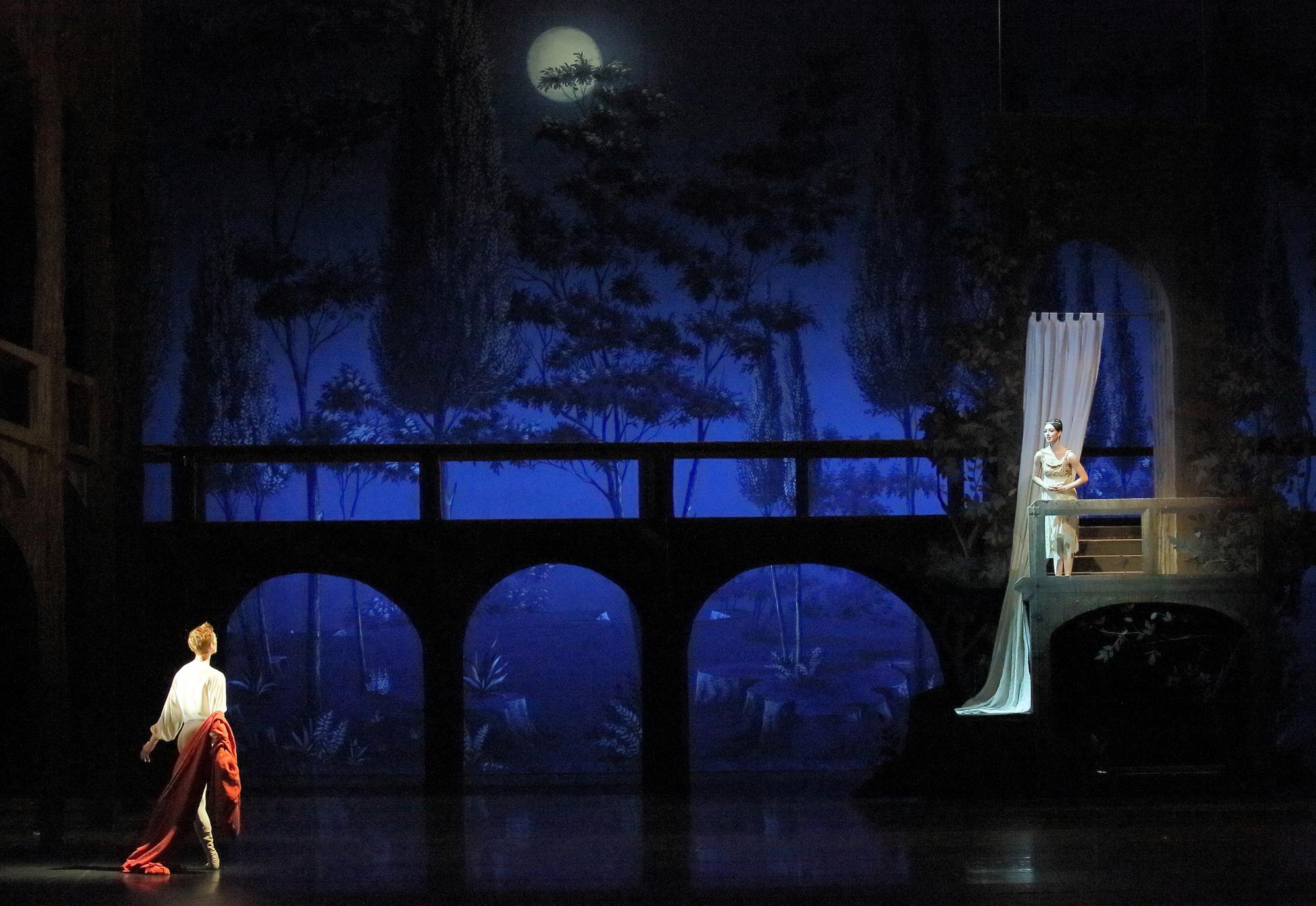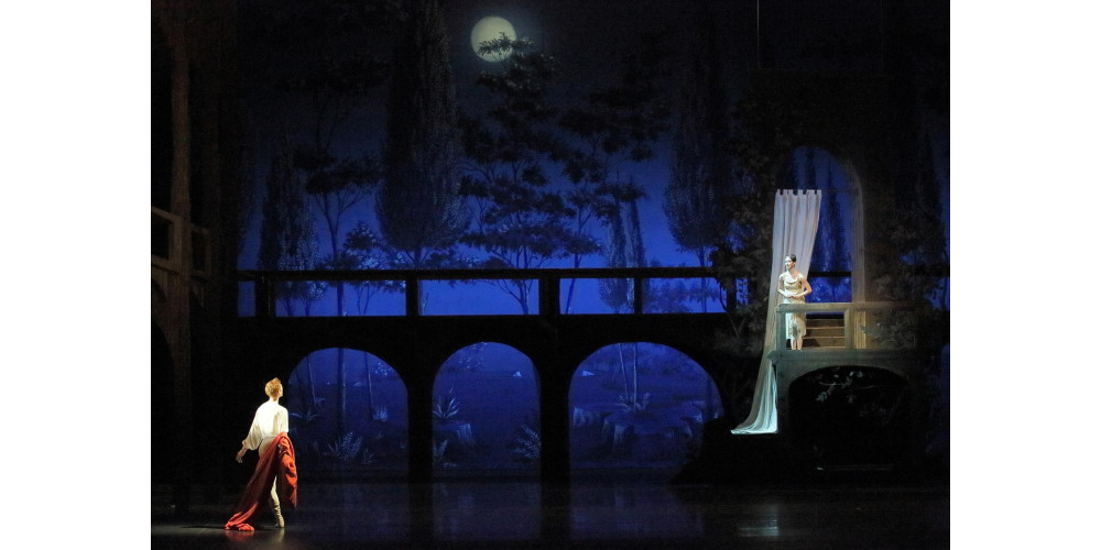 In der Balkon-Szene genießt man die große Bühne des Nationaltheaters, die Jürgen Rose, zumal ihn John Cranko darum bat, bei seiner Münchner Fassung vor 50 Jahren zu einer faszinierenden Abfolge wunderbarer Bühnenbilder anregte. Im Garten fanden sich die Liebenden und entwickelten, sie zaghaft, er vorsichtig, ihren Pas de deux. Dabei beeindruckte Jonah Cook mit seiner gut gesprungenen Huldigung, und Ksenia Ryzhkova zeigte mit hohen Ecartés und Arabesken, wie das Julias Gefühle für ihn beflügelte. Wenn auch beide Julias Rückwärtsdiagonale, das Bild ihrer Überwältigung, nicht bis zum letzten Moment vor ihrem Fallen ausreizten, folgte das Publikum doch gespannt ihrer Verzauberung, wie die anhaltende Stille vor dem Applaus bestätigte.