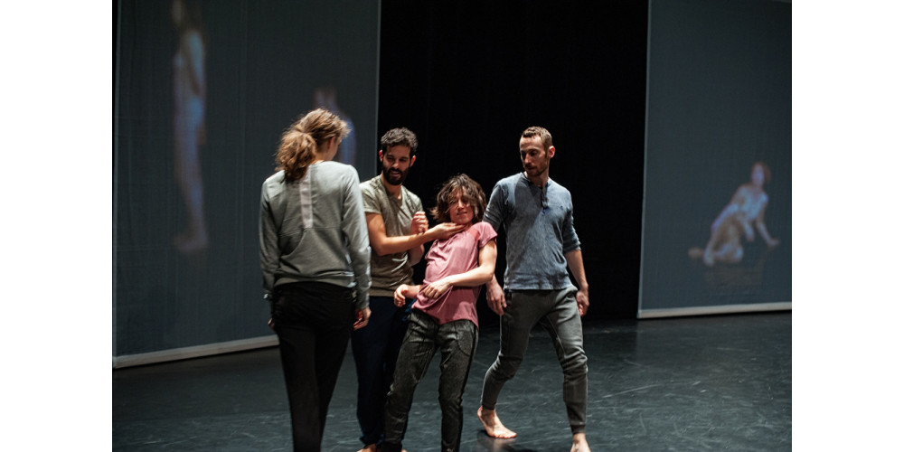 Zwei Frauen und zwei Männer – Sahra Huby aus Belgien, die 2009 den Preis „Das beste deutsche Tanzsolo“ gewann, Maxwell McCarthy und Quindell Orton aus Australien und der Spanier Victor Perez Armero – haben nacheinander die Bühne der Kammer 2 betreten, in der die Zuschauer auf weißem Stoff ohne Schuhe bequem auf Matratzen lagern. Eine Stimme über Lautsprecher beschreibt Moves und Positionen von Tänzern, und jeweils eine(r) der Vier demonstriert sie. Der kontinuierliche Blickkontakt dieser Menschen mit schönen Körpern sucht Nähe zum Publikum. Mehrere im Raum hängende Schirme zeigen, zunächst unscharf, Körperteile der Tänzer nackt und verbinden live gesprochene mit elektronisch hallenden Texten über das Besondere der Körper von Tänzern: ihre Schultern, ihr Becken, ihre sexuell attraktiven Bewegungen, die sie unbewusst machen. „Der leichte Umgang der Tänzerinnen und Tänzer mit ihren Körpern wirkt anziehend auf Menschen, die dann oft diese Körper berühren wollen“, so etwa lautet die These. Etwas beschwerlich wird weiter über Momente der Stimulierung räsoniert, wie es vor allem für Insider der Tanzszene interessant ist. Doch hier und da horcht auch der distanziertere Teilnehmer auf, so zum Beispiel, wenn eine Person über dem Körper einer anderen diesen „wie eine Landschaft, in die ich hineinfalle“ sieht. Dann erzählen die Tänzer von Versuchsanordnungen, in denen alles – von Distanz zu erregender Nähe, Lieblingsstellungen und Stöhnen – erlaubt ist, nur nicht, den anderen zu berühren. Sie stellen das nach, und auf den Bildschirmen sieht man die analogen Bewegungen ihrer nackten Körper: „You can be all in the same time: object and voyeur.“ Selbstverständlich ist es glaubhaft, dass während der letzten Wochen der Probenarbeit eine enge, offene Beziehung zwischen ihnen entstand, eine erotisierte. Aber wenn die Tänzer behaupten, sie würden auch irgendwie von den Blicken des Publikums penetriert, koppelt sich ihre Phantasie wohl von der ihrer meisten Zuschauer ab.