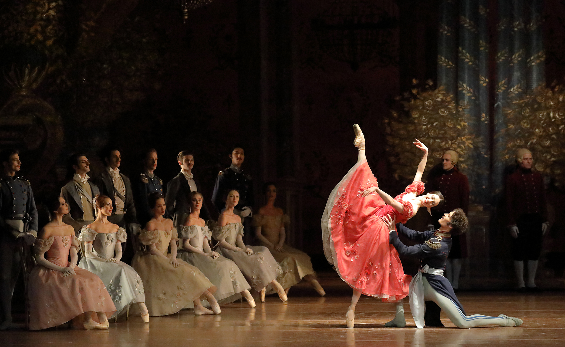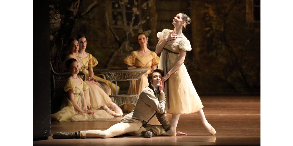 Auch bei einer ersehnten Wiederaufnahme nach sieben Jahren wirkt es leicht überdreht, wenn drei Frauen beim Nähen in geschwindem Gleichklang die Fäden lang ziehen. Doch Laurretta Summerscales ließ die Gefahr der Affektiertheit bei ihrem Debut schon in Olgas erster Variation weitgehend hinter sich, indem sie mit schönen Port de bras luftig und anmutig tanzte. Nach ihr ließ Jonah Cook mit exakter Klarheit die Choreografie von Lenskis erster Variation erstrahlen. Als Paar öffneten sie sich füreinander, ihr Pas de deux hatte Beseeltheit durch Liebe. Die Freude darüber machten beide sichtbar, sie durch hohe Ecartés und Fußschnelligkeit, er mit seinen Sprüngen. In der Begegnung mit Onegin war Ksenia Ryshkova, eben noch Olgas reifere Schwester, eine schüchterne, ganz junge Tatjana. Erik Murzagaliyev tanzte die Selbstverlorenheit des Titelhelden so ansehnlich, dass es folgerichtig war, wie scheu sie ihm in naiver Faszination folgte.