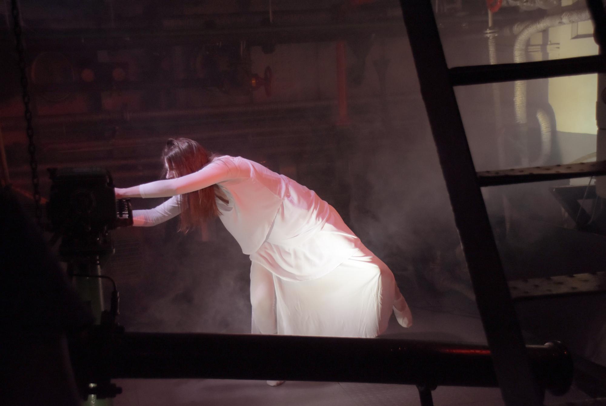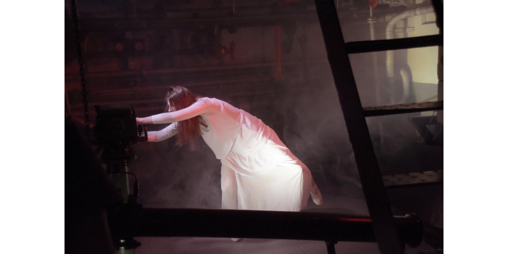 „Rivers 2“ nennen die Choreografinnen Katrin Hofreiter und die Österreicherin Katharina Weinhuber ihr Konzept, mit dem sie an mehreren Stationen unter und über Deck das dampfgetriebene Museumsschiff mit fünf Tänzerinnen erkunden. Im Maschinenraum mit schwarz glänzenden Kesseln kauert die nächste Tänzerin (Susanne Baur) zwischen Gestängen, Rohren und Leitern auf dem metallenen Boden. Seitlich angestrahlt von einem Scheinwerfer und eingehüllt in Trockennebel, der sich immer weiter ausbreitet, wirkt die weiß gekleidete und geschminkte Figur wie eine geisterhafte Erscheinung, eine „Weiße Frau“ von der gleichermaßen etwas Bedrohliches, wie ein verheißungsvolles Erlösungsversprechen auszugehen scheint.