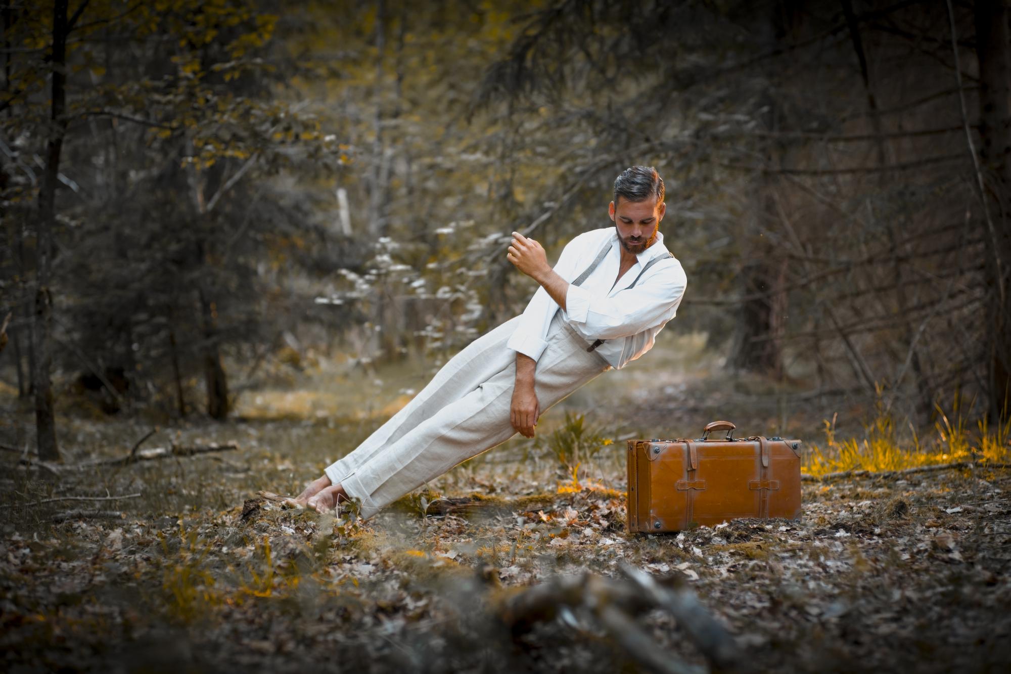 Erst als sich Tänzer Alfonso Fernandez in seinem Solo räumlich befreit, werden auch die Bewegungen raumgreifender, weicher und finden zu ganzkörperlichem Ausdruck. Die anderen Tänzer*innen folgen seinem Vorbild und gehen zu heiter-kecken Klängen Kurt Weills auf Entdeckungsreise – die Stimmung der Neugier überwiegt: Koffer, die zuvor als schutzspendende Verstecke oder Zelte verstanden werden konnten, werden nun zum Ball oder zum Percussions-Instrument umfunktioniert.