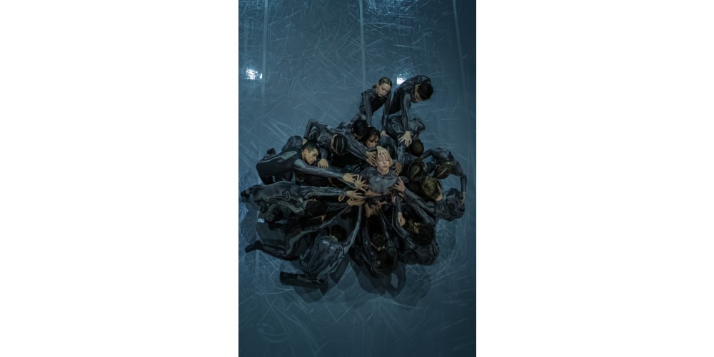 Die Zuschauer*innen sehen zunächst nur eine gallertartig wabernde transparente Masse – von der Decke bis zum Bühnenboden in Kunststoffbahnen reichend. Flüssig? Fest? Greifbar? Dahinter werden wellenartige Bewegungen von Körpern wahrnehmbar. Elektronische Impulse wirken wie Stromstöße auf die heraustretenden Individuen. Der aus vielen einzelnen Armen, Beinen, Köpfen, Körperteilen bestehende Tanz-Körper löst sich in Einzelteile auf, die Tänzer*innen tanzen aus der Reihe. Und da ist sie plötzlich: die sirrende, perlende Heiterkeit eines Johann Sebastian Bach. Das Auge wird quasi gestreichelt von sich emotional entblößenden, sich hingebenden und in größte Dehnbarkeit und Sprunghaftigkeit fließende Tänzer*innen.
