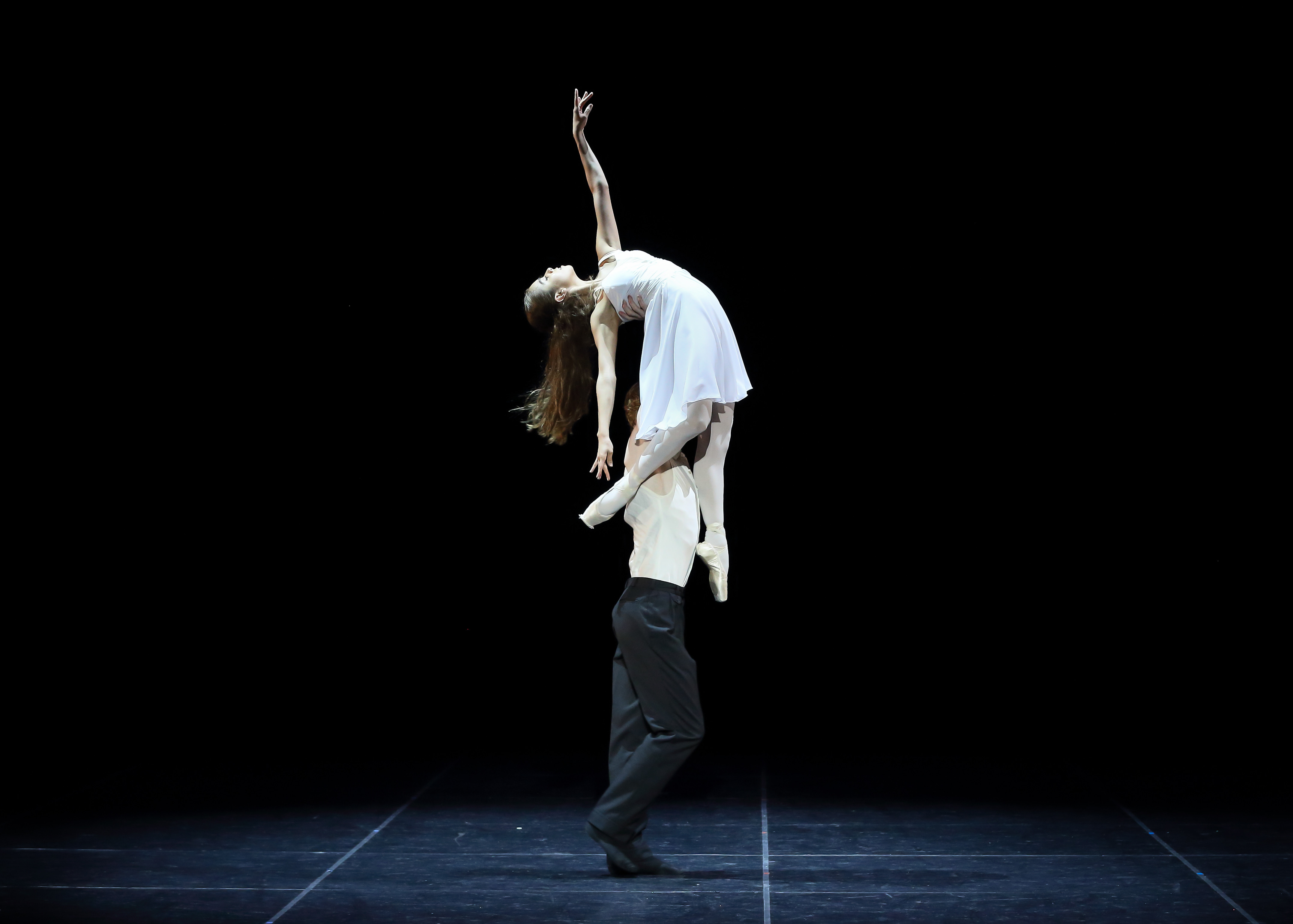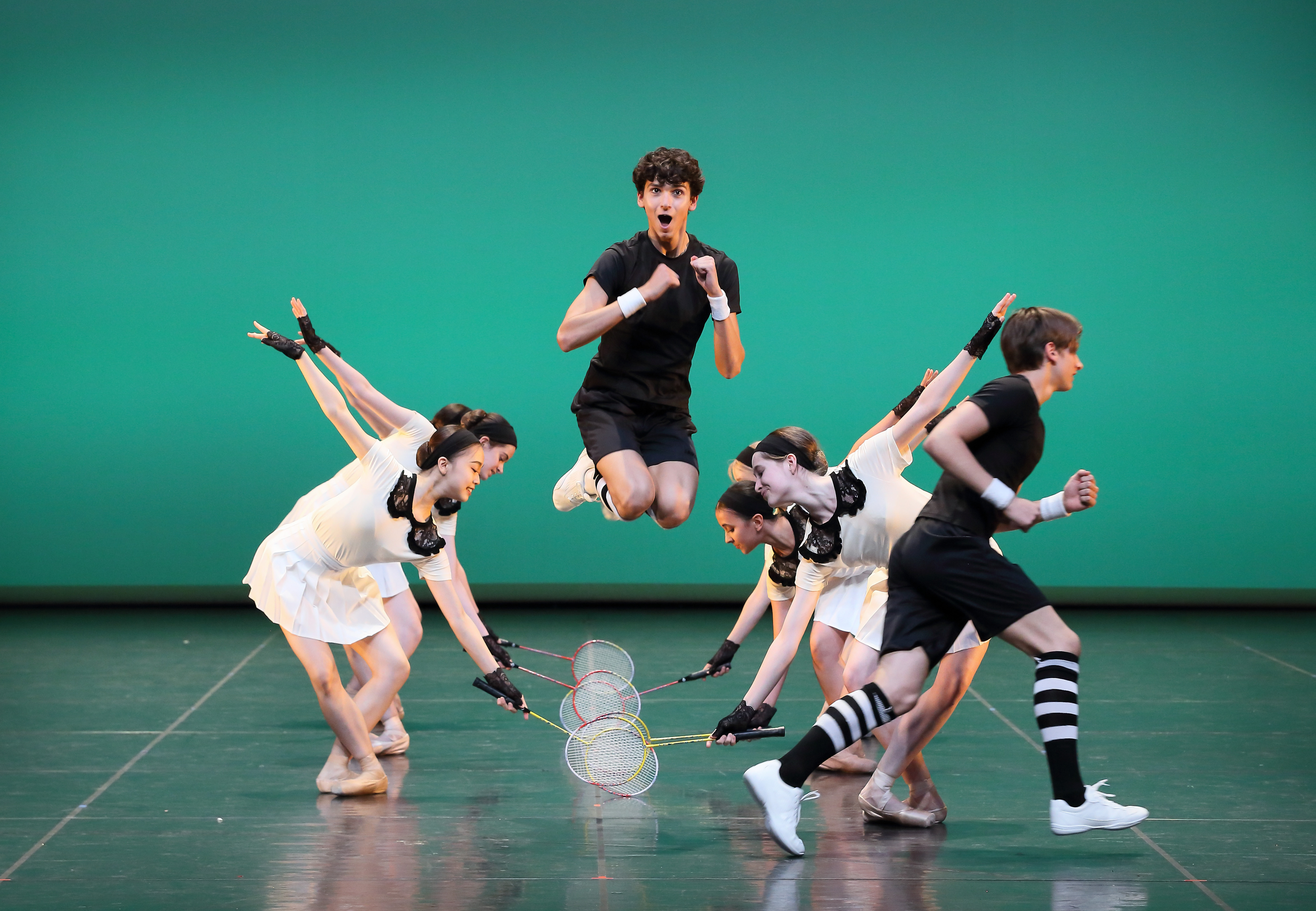 Eröffnet wird der Abend von den Bachelor of Arts-Student*innen mit Bournonvilles luftiger Choreografie „A Folktale“, die neben der Leichtigkeit eine ungeheure Präzision voraussetzt und ein im wahrsten Sinne klassisches Beispiel für Raumsymmetrie, Richtungen und Tanzstlilistik darstellt. Gerade Bournonville ist gespickt mit Schwierigkeiten, die salopp formuliert ‚einfach um die Ecke kommen‘, ohne ‚Vorwarnung‘. Zu sehen sind Sprungserien für männliche wie auch für weibliche Tänzer, Sprünge, die unvermittelt auf der Bühne erscheinen – ohne Préparations, die große Sprung- und Pirouettenfolgen ankündigen, wie es in den großen, abendfüllenden klassischen Balletten normalerweise der Fall ist. Die Kunst liegt hier, bei Bournonville in der Koordination der Arme und Beine, die nicht immer kongruent und doch abgestimmt sein soll. Die Tänzer*innen ernten dafür Bravorufe. Man würde dem Stück nicht gerecht werden, würde man den Wert der Bournonville’schen Choreografien allein unter dem Aspekt des Studiums der Technik betrachten.