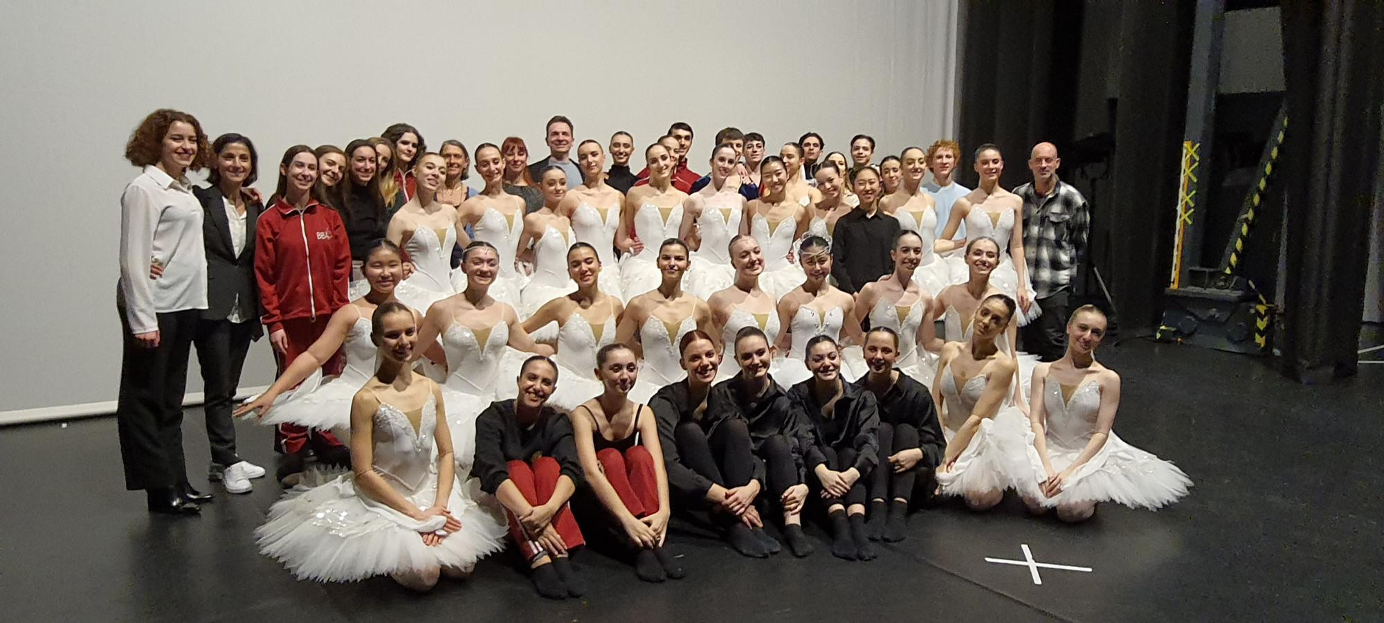 So war nicht nur die Schattenszene von „La Bayadère“ zu bewundern. Allein die Adagio-Szene des Corps de Ballets stellt immense Herausforderungen an das Ensemble dar. Erschwerend hinzu kommen bei dieser Aufführung, dass der Bühnenraum nahezu ausgeschöpft war. Getanzt wird von ausschließlich den internationale Tanzstudent*innen, abgesehen von dem lebendig agierenden Solisten Sava Milojević, der vom „Bayerischen Staatsballett“ ‚ausgeliehen‘ wurde und zusammen mit der Company der Akademie-Ensemble in „La Sylphide“ auf der Bühne glänzte und strahlte. Überhaupt besteht eine sehr enge Beziehung zum „Bayerischen Staatsballett“. Allein der Mit-Gründer dieser privaten Ballettakademie, auch mit Kursen für Laien, war langjähriger erster Solist am „Bayerischen Staatsballett“. Gemeint ist das Team um den hochdotierten und mit zahlreichen renommierten Auszeichnungen geehrten Kammertänzer Alen Bottaini und der Kammertänzerin Lisa-Marie Cullum, die beide nicht nur mit großen solistischen Rollen beim Bayerischen Staatsballett für Furore sorgten, sondern auch weltweit an großen Bühnen wie am Kirov-Ballett künstlerisch Karriere machten.