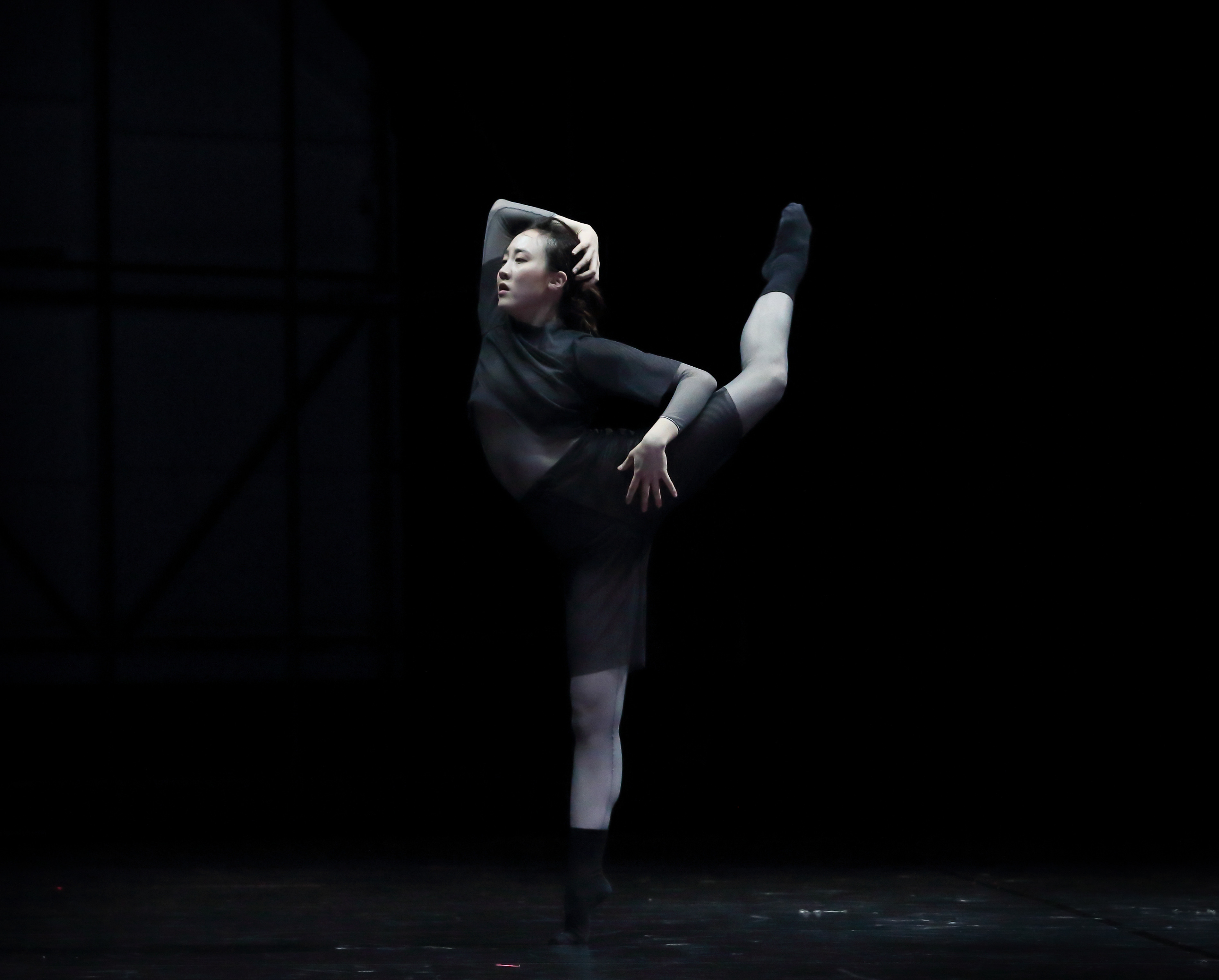 Vor kahlem Ambiente entspinnt sich ein Spiel umher und umeinander laufender Akteure. Immer wieder finden sich erst eine, dann mehrere Fünfergruppen zusammen. Man gibt sich die Hände und bewegt sich im Kollektiv. Hie und da fallen Einzelne solistisch auf, darunter beispielsweise der sich plötzlich ziemlich virtuos-klassisch ausdrückende Douglas Evangelista – oder Yunju Lee. Letztere scheint einem Druck, der auf ihr und der sie umgebenden Gesellschaft lastet, nicht mehr gewachsen. Es drückt sie zu Boden. Und dennoch reiht sie sich – kurz bevor der Schlussvorhang fällt – noch schnell unter die hinter ihr Stehenden ein.
