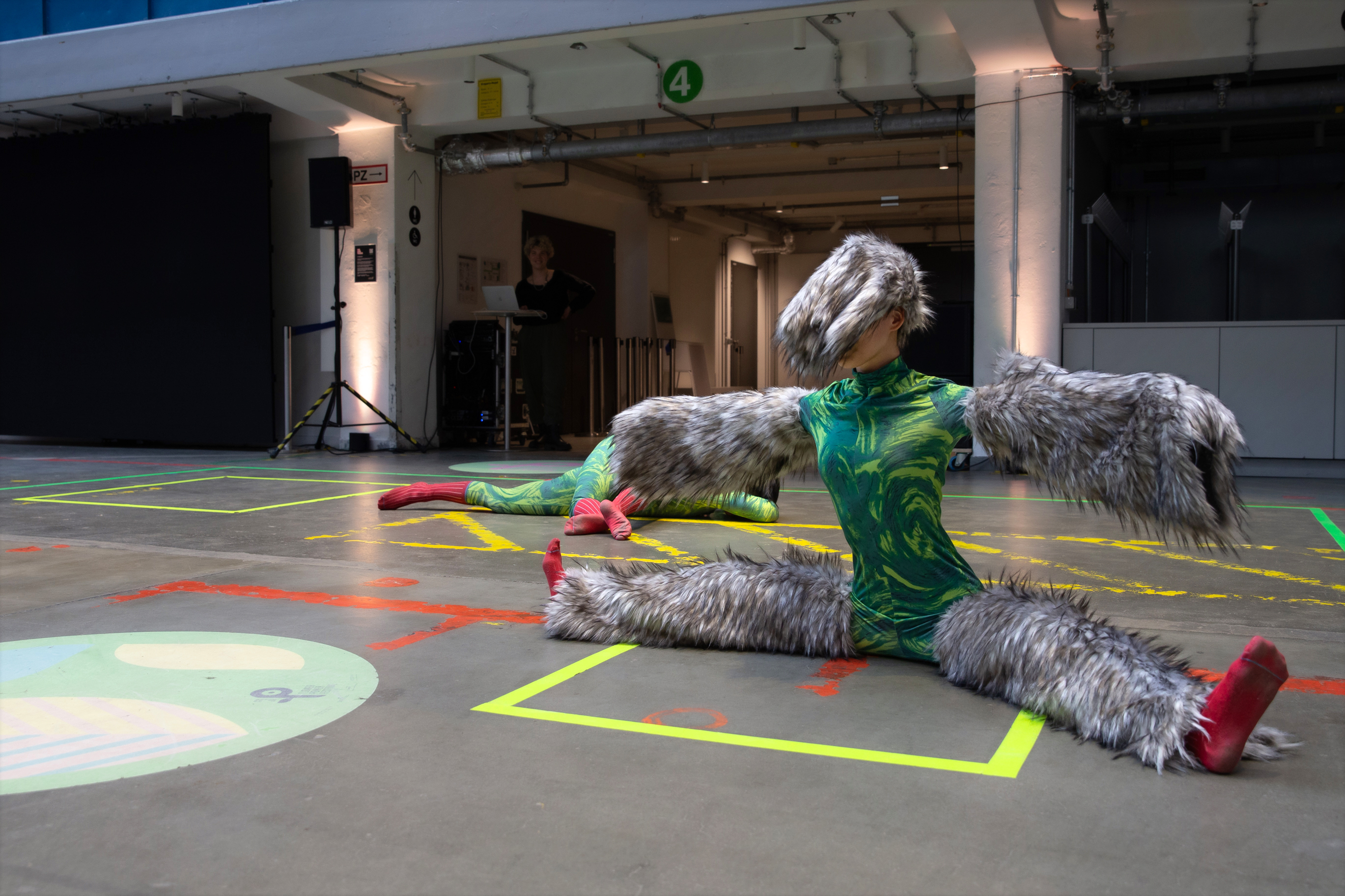 Ein breites (Interpretations)spektrum offenbart sich so den unterschiedlichen Perspektiven von Kindern und Erwachsenen. Diese neuen Konstellationen, die sich nicht nur durch das Herauslösen der Figuren von der konkreten Handlung ergeben, sondern auch buchübergreifend - also im Zusammenspiel mit anderen Figuren, lassen neue Welten entstehen, die alle Figuren miteinander erleben. Da gibt es die mikroskopisch kleine(n) Tiere, Sendaks „Wilde Kerle“ und die „Raupe Nimmersatt“, die sich zueinander zu einem ganz eigenen Kosmos finden, auch mit dem Publikum interagierend. Je nach musikalischer Struktur ergibt sich choreografisch eine bestimmte Bewegungsabfolge, z.B. das Robben auf dem Boden, das Schlängeln, die Wiederkehr des Pliées in der 2. Position, mal statisch, mal dynamisch - immer anregend.
