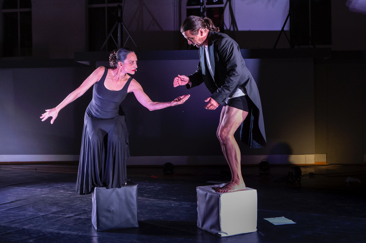 Im neuen Stück „Ava#Tar“ geht es um KI, Algorithmen und wie sie uns bewegen, vielleicht sogar lenken und kontrollieren. Es ist ein komplexes, hochaktuelles und auch verwirrendes Thema, für das die beiden Tanzenden keine Antworten liefern wollen. Sie zielen darauf ab, „die richtigen Fragen zu stellen“, wie sie in ihrem Konzept schreiben. Das haben Schlögl und Steinberger, wie alles, was sie in den letzten Jahren gemacht haben, gemeinsam entwickelt. Wobei „ich für die politischen Themensetzungen zuständig bin“, erklärt der Passauer seine Rolle „und Ute bringt mich dann wieder auf den Boden zurück“. Die Tänzerin und Choreografin bekennt sich zu „den Herzensentscheidungen“, will dem Zufall, dem Menschlichen Raum geben. Der Kälte der künstlichen Intelligenz, „die dem freien Denken und herzgesteuerten Zufall den Weg versperren“, setzt sie die Wärme des Herzens entgegen.