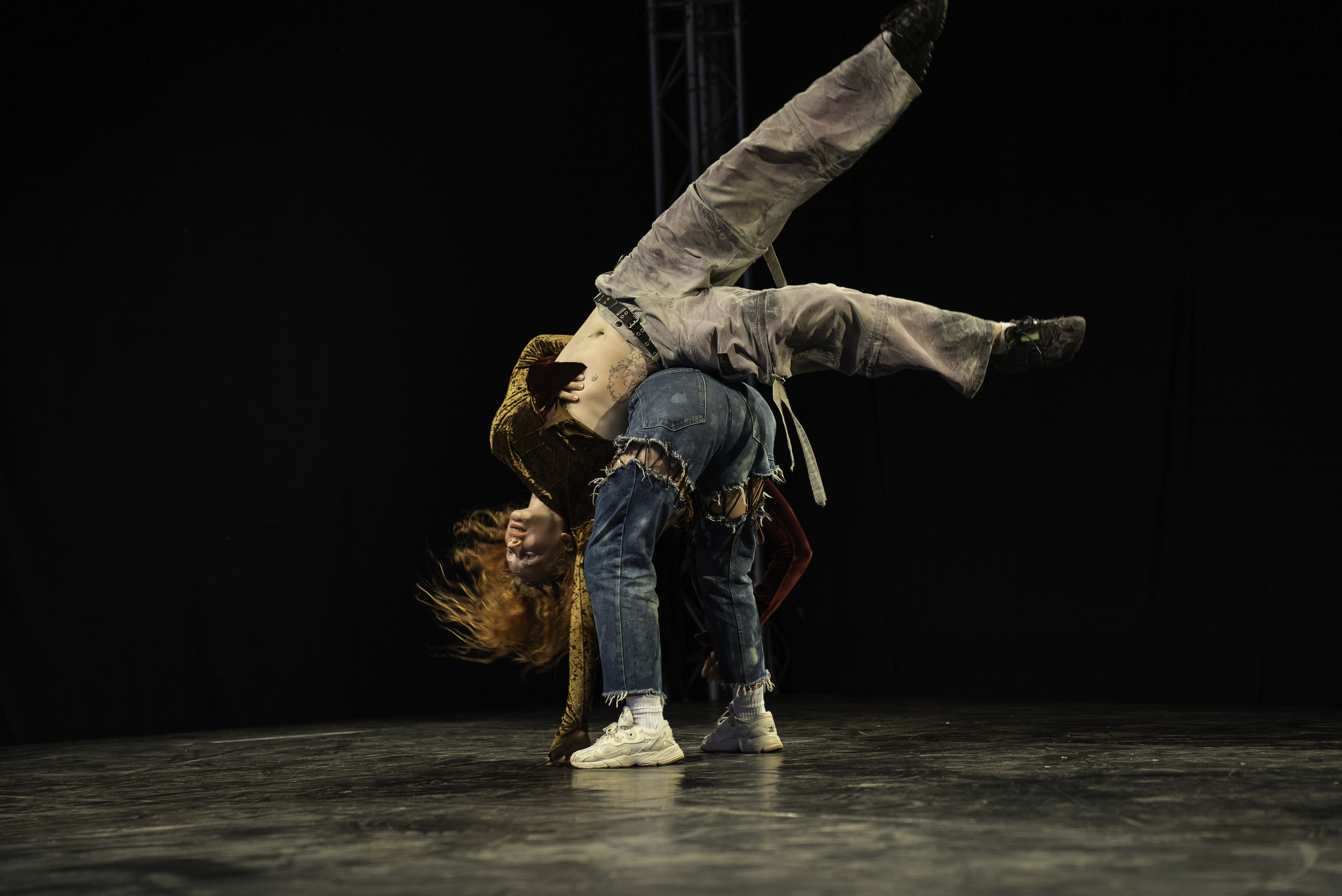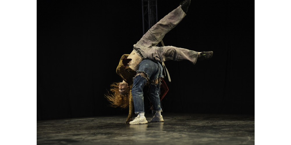 Diese fragmentarische Ästhetik mit harten Schnitten prägt das gesamte Stück. Die von Alina Belyagina und den Tänzerinnen kreierte Bewegungssprache wird so zu einer komplexen Collage aus verschiedenen Stilen und Qualitäten: akrobatische, raumgreifende und risikoreiche Bewegungen wechseln sich ab mit einer fast ferngesteuert wirkenden Bewegungsqualität, die an Videospiele denken lässt. „Shaking“ ist ein wiederkehrendes Motiv, sowohl im ganzen Körper als auch in Form von Twerking. Bruchstückhaft werden Referenzen zum House-Dance oder zum Clubbing aufgemacht.