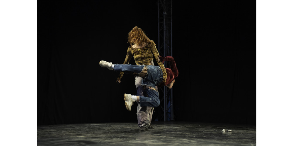 Eins ist schon mal sicher: „HOLD ME“ ist kein „hold me?“, sondern eher ein „hold me!“. Das zeigt sich gleich in der ersten Szene: die beiden Performerinnen Veronika Tikhonova und Eva Julliere spielen mit viel Risiko, während sie sich übereinanderwerfen und gegenseitig wieder aufrichten, nur um im nächsten Moment wieder zu Boden zu gehen. Und trotzdem sind sie immer da und fangen sich auf in ihrer Verletzlichkeit, finden gemeinsam die Balance zwischen Stabilität und Instabilität, Risiko und Fürsorge. Immer weiter verknoten und verschränken sich die beiden Körper, bis sie scheinbar zu einem Wesen verschmelzen – und dann: cut, eine der Performerinnen steht auf, die andere bleibt allein zurück.