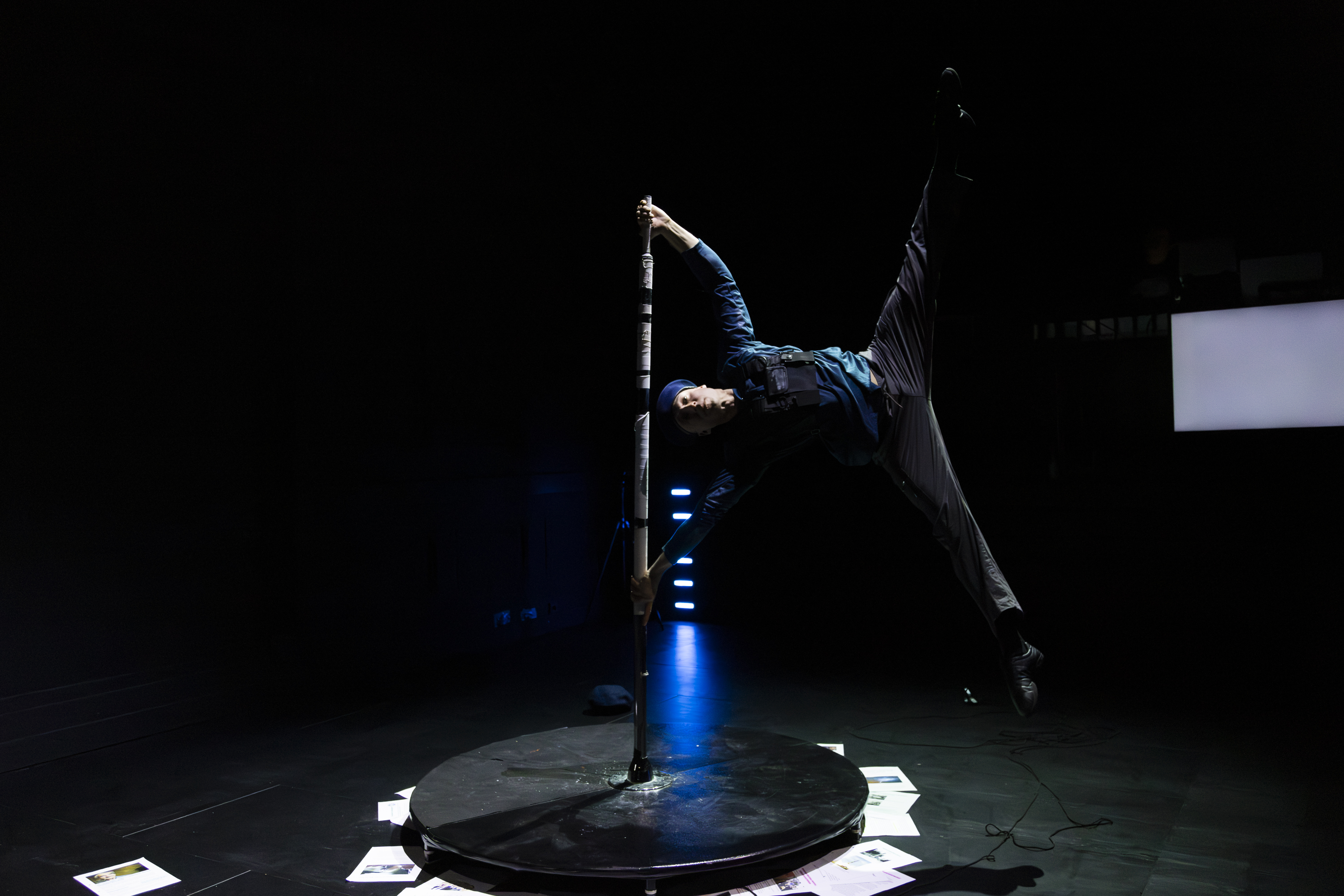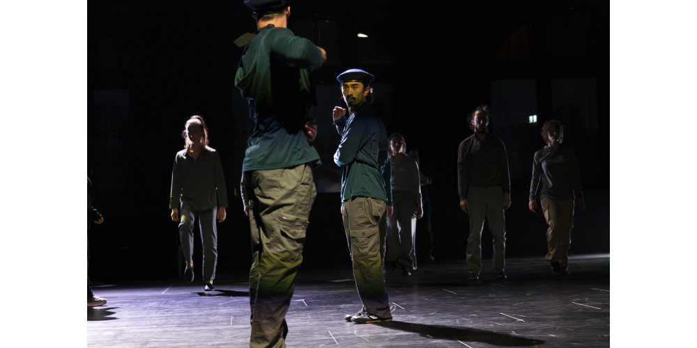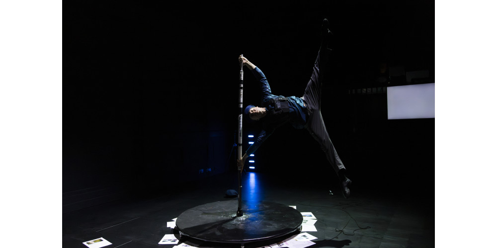 Wieder zurück im dunklen Festsaal gewinnt die Aufführung dann mit jeder Minute an Dichte und Intensität. Konnte man dem eingangs erwähnten Ratschlag von Beate Höhn bis dahin folgen und immer in Richtung der Lichtquelle schauen, so wird dies zusehends unmöglich. Da zucken einige der ausgezeichneten Tänzer*innen konvulsivisch, während andere ein paar Meter weiter wie Zombies wanken. Da kreiselt der Hip-Hop-Weltmeister Henry Nguyen auf seinem Kopf, während kurze Zeit später der Akrobat Jonas Dürrbeck eine Fahnenstange für seine Kunst zweckentfremdet. Dazu ein rasant geschnittener, auf eine große Leinwand projizierter Film von Ali Al-Zubaidi, der einen mit einem halben Jahrhundert Weltgeschichte konfrontiert: Von Aids bis Ebola, von Anti-Atom-Protesten bis zu den Massendemonstrationen nach dem gewaltsamen Tod von Jina Mahsa Amini. Dazwischen immer wieder Kriege, zerstörte Häuser, Tote und sehr viele Populisten und Potentaten. Dazu dröhnt die Soundanlage, einige Zuschauer*innen halten sich die Ohren zu.