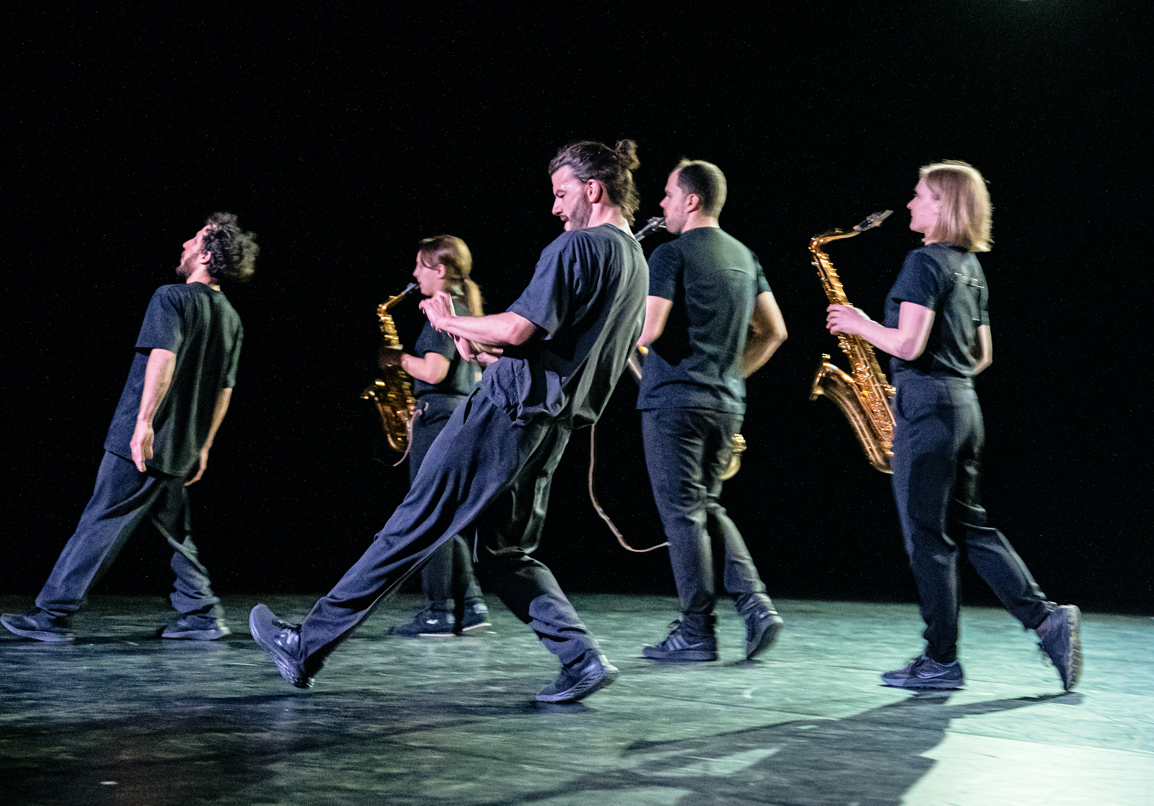 2016 begann Pisu choreografisch eigene Wege zu gehen. Vor vier Jahren gründete sie gemeinsam mit dem Arcis Saxophon Quartett das künstlerisch innovative Arcis_Collective, das für kreatives Zusammenspiel von zeitgenössischem Tanz und klassischer Musik steht und von Pisu geleitet wird. Zu welcher Musik choreografiert werden soll, wird fünf Tage vor Probenbeginn bekanntgegeben. Die Saxophonist*innen Claus Hierluksch, Ricarda Fuss, Anna-Marie Schäfer und Jure Knez hatten allerdings sechs Wochen zur Verfügung, um sich mit den Werken vertraut zu machen.