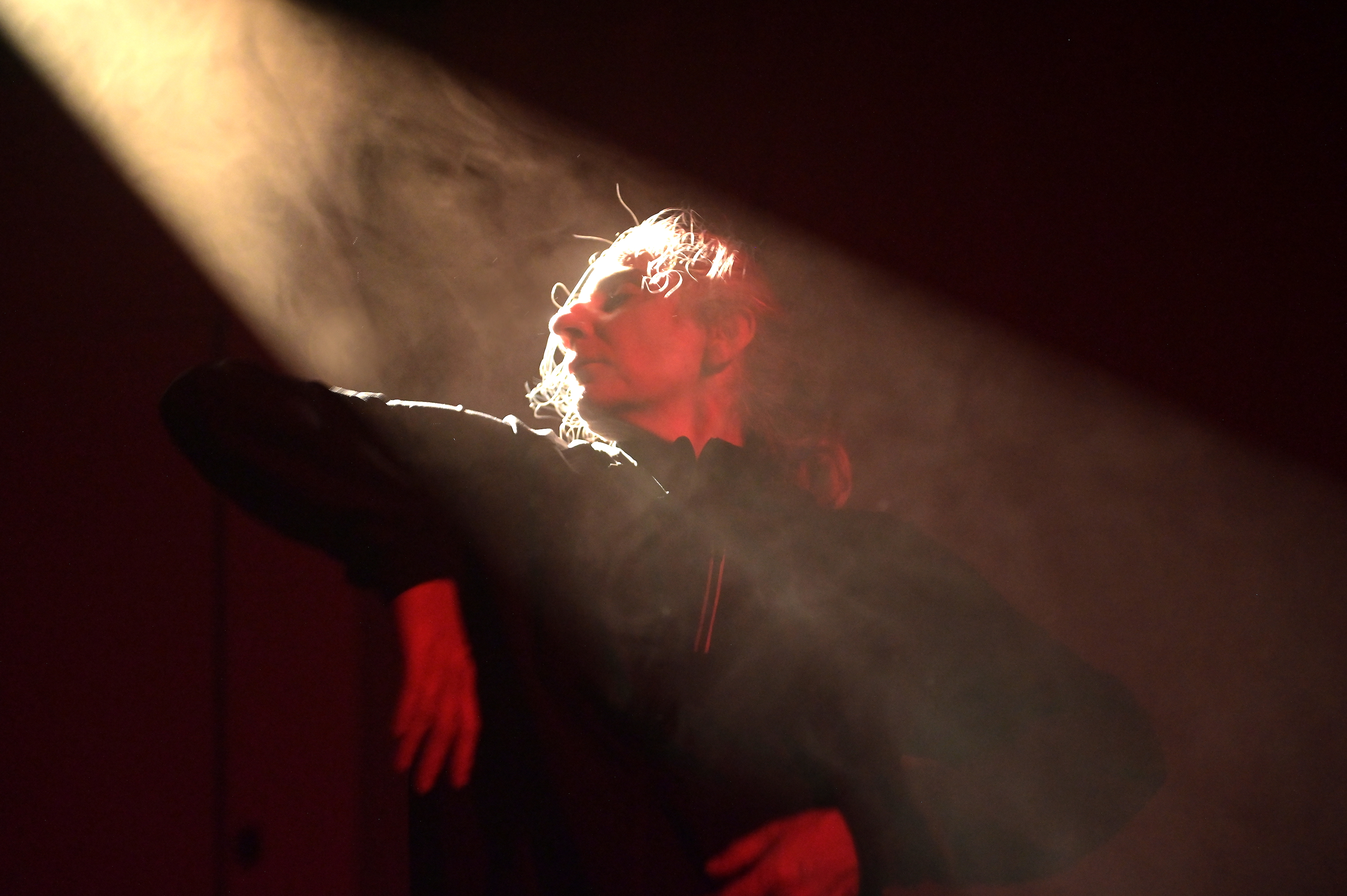 Zu sehen gibt es in „Phantasmagoria“ auf den ersten Blick wenig. Dafür sirrt, surrt oder rumort es bald um einen herum. Manche hören leise saugende Geräusche hinter sich. Unverständlich hingegen bleibt, was eine Stimme weiter weg laut hinein ins Dunkel spricht. Regelrecht unsichtbar und nahezu unbemerkt haben Felbers vier Performer*innen den Raum betreten. Dass man ihr Näherkommen – insbesondere zu Beginn – eher spürt bzw. erlauscht denn optisch wahrnimmt, macht den Charme eines Projekts aus, bei dem sich das Zu- und Umeinander von Akteur*innen und Zuschauer*innen langsam intensiviert und beständig verändert.