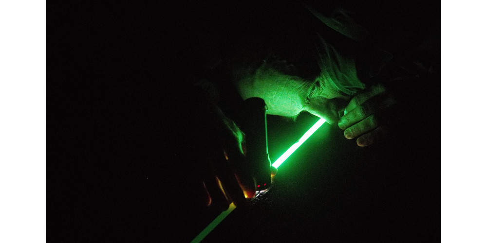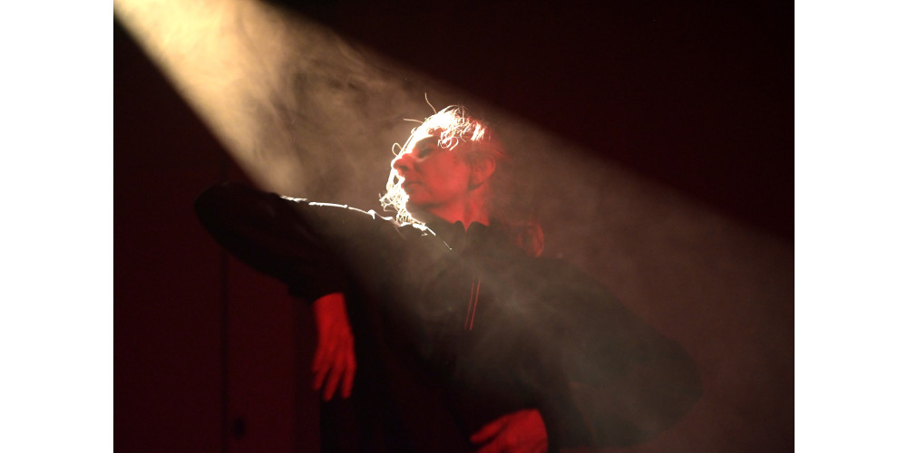 Auf zur Geisterstunde! Wie radioaktiv schillert ein Gesicht grünlich – in Seitenlage und scheinbar körperlos –im Schein einer davor auf den Boden gedrückten Taschenlampe. Seelenruhig rutschen Kinn und Augen an der weißen Bodenmarkierungslinie entlang. Ringsum herrscht Dunkelheit und Stille. „Phantasmagoria“ von Stephanie Felber ist eine wundersame und akustisch eigentümliche Produktion – allein schon deshalb, weil die Münchner Choreografin in ihrer jüngsten „Tanz- & Klangperformance“ Licht nur äußerst spärlich einsetzt. Sogar die sonst stets auffällig schimmernden Fluchtwegshinweise sind dank Sondergenehmigung bei der Uraufführung am 5. April im schwere reiter abgeklebt. Damit Felbers Konzept nahezu totaler Dunkelheit aufgeht, wird die Sicherheit während der Aufführungen stattdessen durch menschliches Personal gewährleistet.