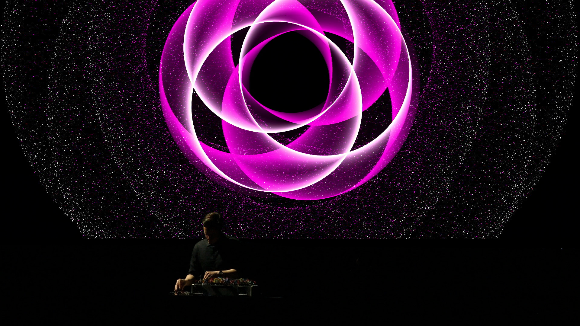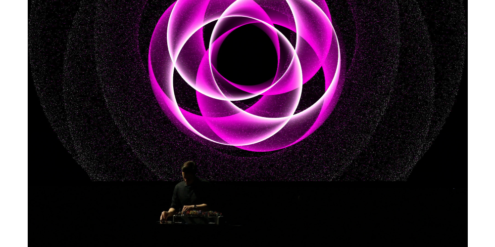 Die braucht der japanische Multimedia-Künstler Hiroaki Umeda nicht, denn bei ihm entsteht offenbar alles aus seinen eigenen Bewegungen. Das elektronische Knistern und Knattern und die aus einer einzigen horizontalen Linie geborenen Visuals. Kleine Ableger davon flitzen als weiße Tierchen oder lange Nadeln über den Screen, als Kometenregen, Funkenflug und Bestandteile einer riesigen Welle, bevor sie am Ende ordentliche Webmuster bilden. Während Umeda als Tänzer davor zuckt, stampft und den Energiefluss zu dirigieren scheint, wünscht man sich für die Bilder von „Intensional Particle“ eine räumlichere Projektionsfläche, die den menschlichen Körper ganz umgibt und nicht nur hinterleuchtet. Überhaupt werden die Wünsche nach diesem hybriden Abend vermutlich in alle möglichen Richtungen stieben. Das bringt es so mit sich, wenn verschiedene künstlerische Disziplinen, Publika und Erwartungen ganz neu gemischt werden.