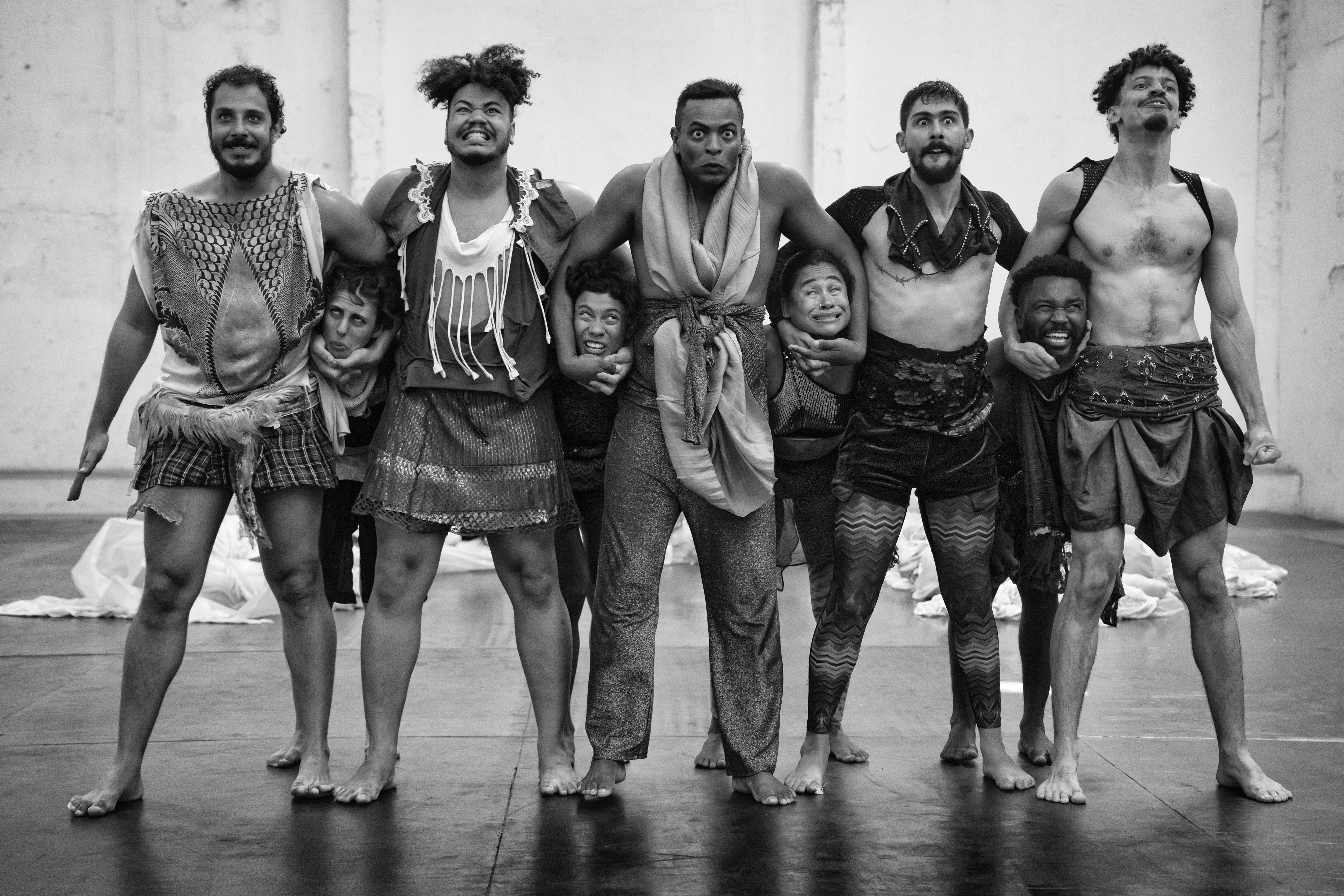 Das Anliegen in „Borda“ ist viel weniger diffus als die anfängliche Beleuchtung. Nach dem ungewohnt monochromen und ruhigen ersten Teil, der auch einiges an Geduld erfordert, folgt ein zweiter, in dem sich die Performer*innen ihrer Masken und Lumpen entledigen und sich in die bunte brasilianische Tanz-Kampf-Show-Truppe verwandeln, die man kennt. An der Nahtstelle dazwischen haben sie ihre Kopf- und Körper-Polster wie abgelegte Fesseln triumphierend in die Höhe gehalten und miteinander zu flüstern und zu kichern begonnen: Nicht eins zu eins entschlüsselbare kleine Akte des Wiederstandes, mit denen sich diese neue Gemeinschaft gleichsam zur Welt bringt.