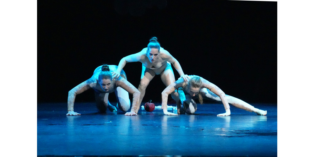 „Mein Vater, mein Vater, jetzt fasst er mich an“, rezitierte eine Offstimme Goethes „Erlkönig“ zu Beginn von „Insomnia – Die schöne Nacht“. Die Choreografinnen Ida Crusius, Eva Eger und Julia-Marie Gerard habe die Traumwelten einer schlaflosen Nacht in surrealen Figuren und Szenen zwischen Absurdität und latentem Schrecken buchstabiert. Ganz so düster, wie die magische Ballade, gerät die über einstündige Tanzperformance letztlich doch nicht. Es ist eher eine Aneinanderreihung von kurzen Clips und rätselhaft-komischen Szenen mit oft minimalistischem Bewegungsvokabular. In einer Mischung aus Alice im Wunderland, Triadischem Ballett und kafkaesker Unheimlichkeit rollen Schnecken mit Pauken auf dem Rücken durchs Bild. Boote schaukeln über die Bühne und ein grässlicher Frosch tanzt Samba zum Glockenspiel, das zwischen seinen Beinen klemmt.