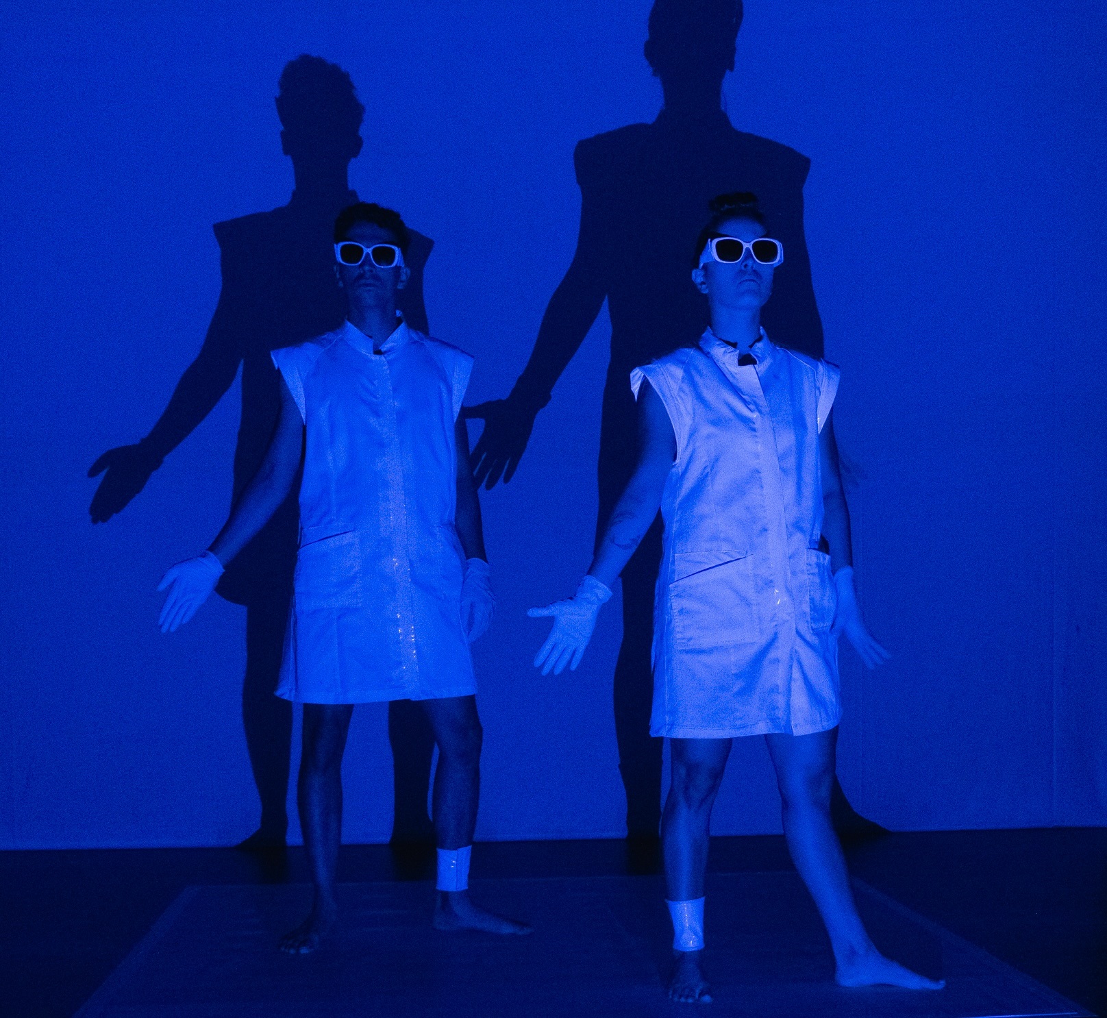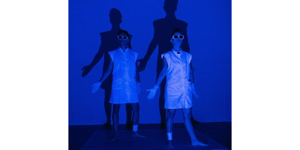Ihre in weißen Laborkitteln steckenden Körper werden von den Projektionen miterfasst und gleichsam vom Bild verschluckt, aber ihre Schatten reißen unübersehbare übermenschengroße Löcher hinein. Als das erstmal passiert und plötzlich ein pulsierendes florales Gebilde direkt aus den Tänzer*innen hervorzusprießen scheint, geht ein lautes „Ah!“ und „Oh!“ durch die gut mit Kindern gefüllten Reihen. Und das, was die beiden da vorne nach dem offenbar recht eigenwilligen Kopf der brasilianischen Choreografin Elisabete Finger machen – sich Gummihandschuhe von den Fingern kauen oder im Schulterstand aus den Hintern qualmen –, ist allemal seltsam genug, um dranzubleiben. Und sind das überhaupt Menschen? Irgendwann zieht Morais zu einem Soundtrack, der direkt aus der Maschinenhalle des Universums zu kommen scheint, Drähte und Kabel aus Alves kollabiertem Körper.