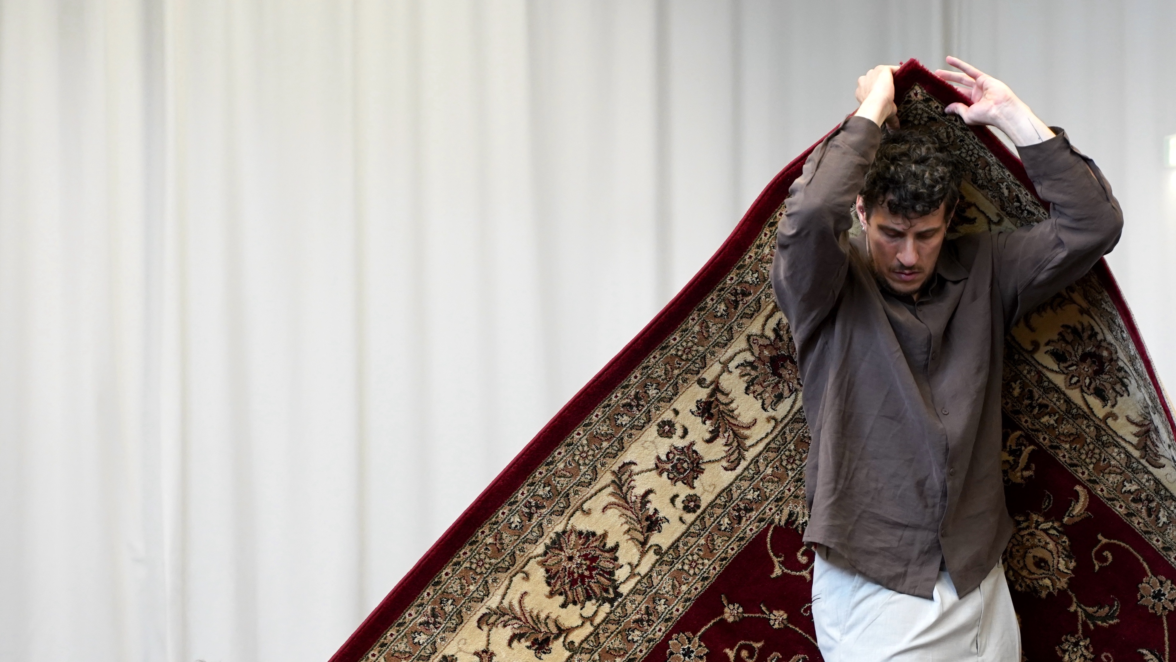Viel weniger rätselhaft geht es bei Alexander Varekhine und Laura Kisselmann zu. Die beiden sitzen anfangs auf einem Perserteppich, der in vielen elterlichen Wohnzimmern liegen dürfte, und fahren mit traurigem Blick mit der Hand über den Flor. Aus dem Off hört man ihre Stimmen von Verlusten erzählen, von der geliebten Jeansjacke, die irgendwann nicht mehr passte und von einem „Du“, das einmal so wichtig war, weil es das „Ich“ beschützte. Ein paar Sätze schwappen auch ins Poetische, wie: „Ich war bekannt in diesem Zuhause. Ich kannte niemanden“. Beim Nachgespräch mit den Jugendlichen erzählt Varekhine auf Nachfrage, dass er in seiner Herkunftsfamilie vor allem gehorcht habe und erst lernen musste, nach seinen eigenen Regeln zu leben, während Kisselmann erst vor kurzem in ihre erste eigene Wohnung gezogen ist.